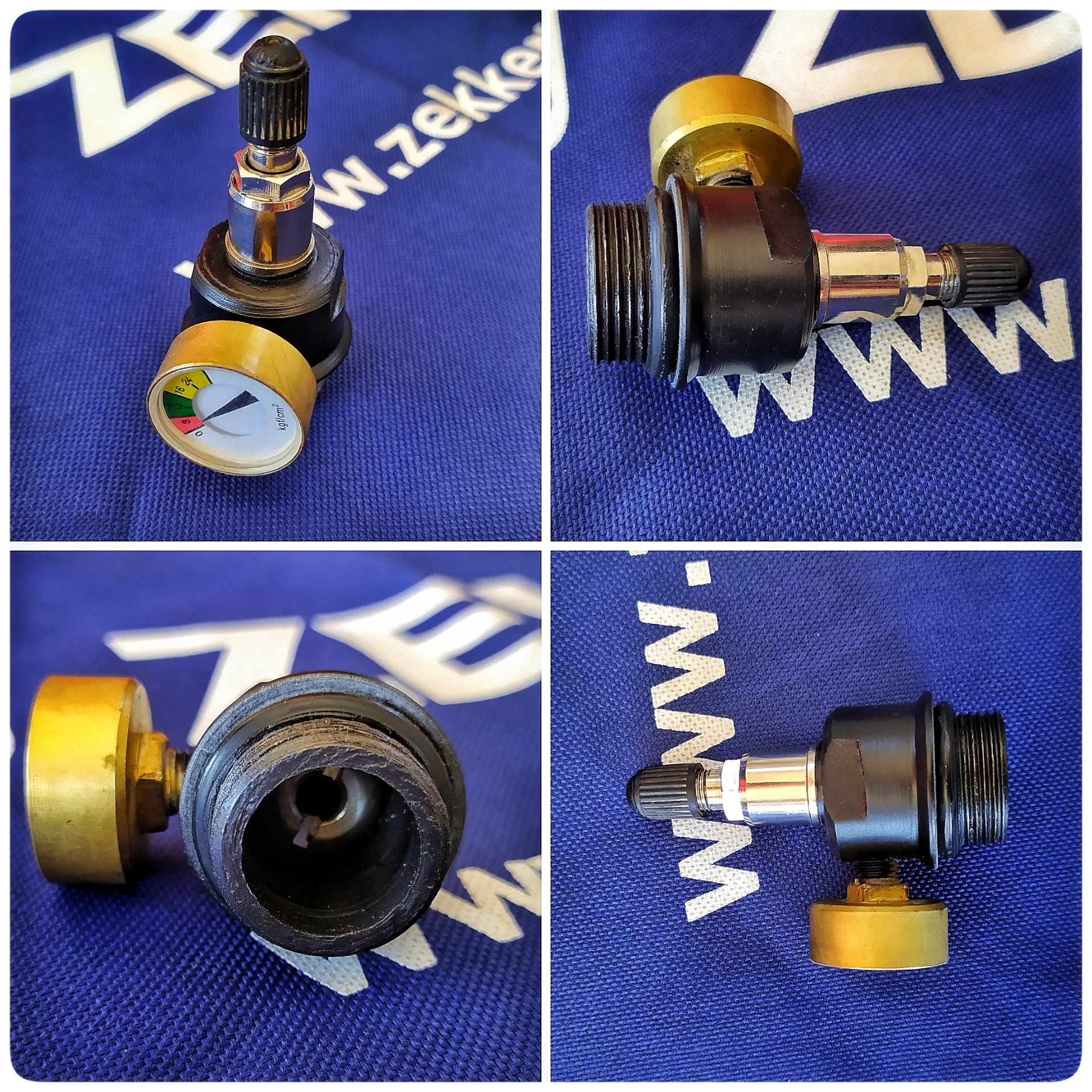 Состоит она из 4-х частей: сама крышка, прокладка, золотник и манометр. Последний пока поставил от того же огнетушителя, просто пока не удалось найти манометр маленького размера (в Донецке у меня таких с десяток лежит в запасах 🥴).