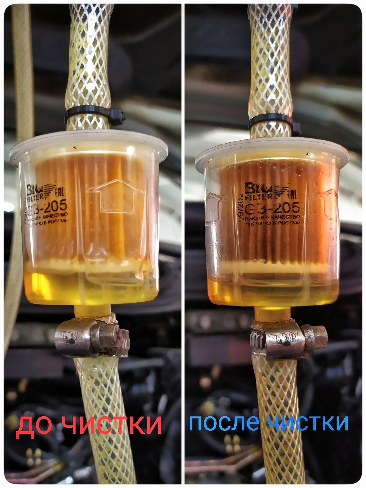 После окончания промывки топливный фильтр установленный на обратку несколько потемнел: