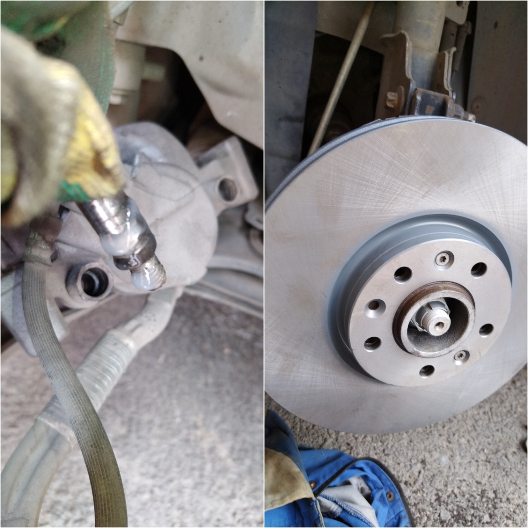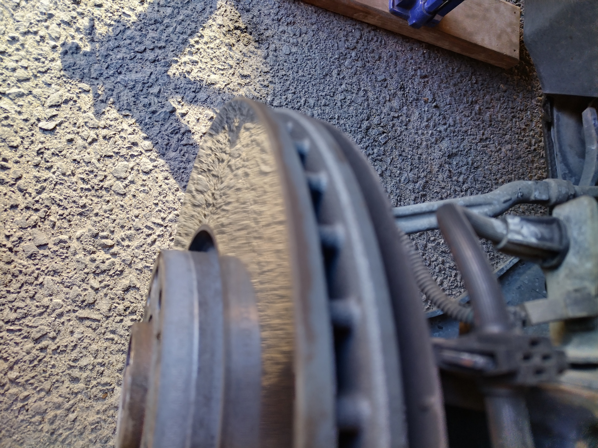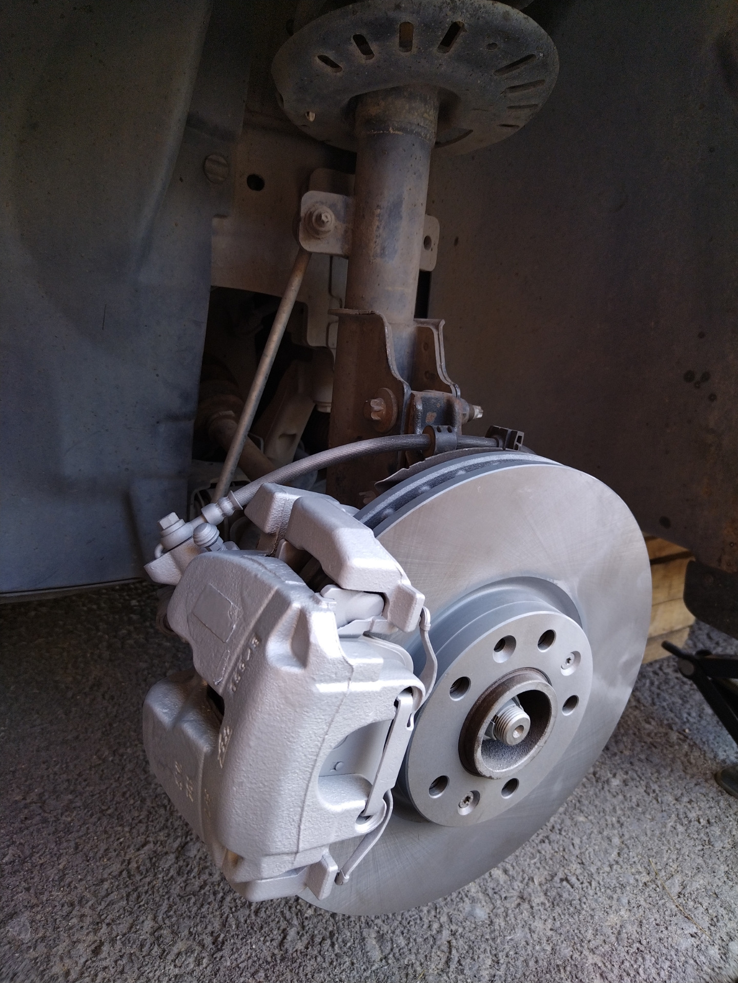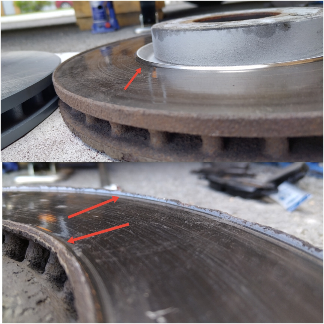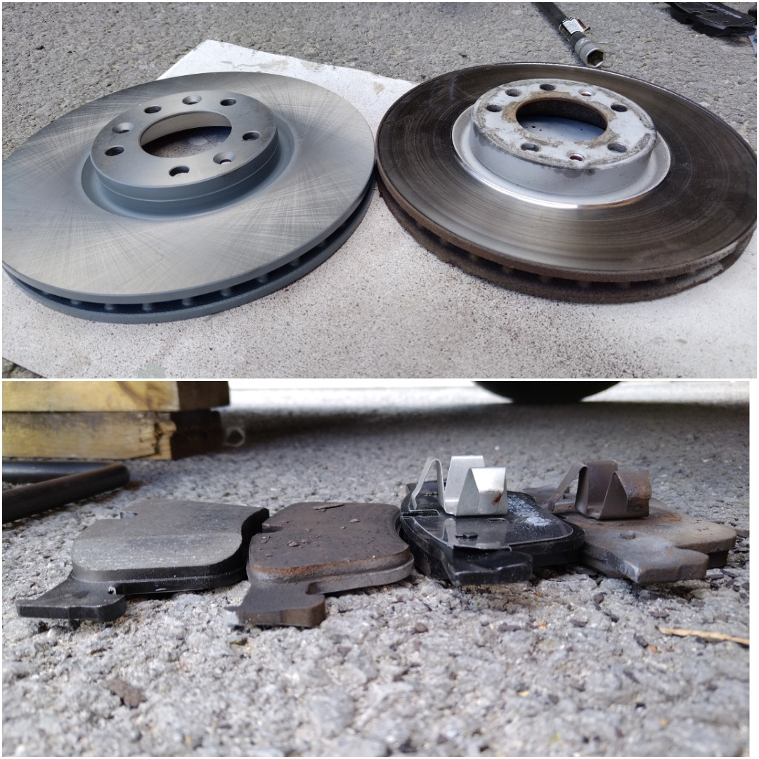 Когда я ставил брызговики и красил тормоза, то обратил внимание на колодки. Передним оставалось жить не долго и задние тоже показалось, что пора менять. А ещё, в какую то из дальних поездок я перегрел тормоза, что они начали потихоньку отдавать в руль после прогрева. Выработка на дисках вроде и не критичная, но если делать проточку, то снимут ещё немного и диски станут тоньше, как следствие ресурс у них будет очень короткий, особенно с моим стилем езды… 😬Поэтому и решил менять передние тормозные диски, ну и колодки в круг.