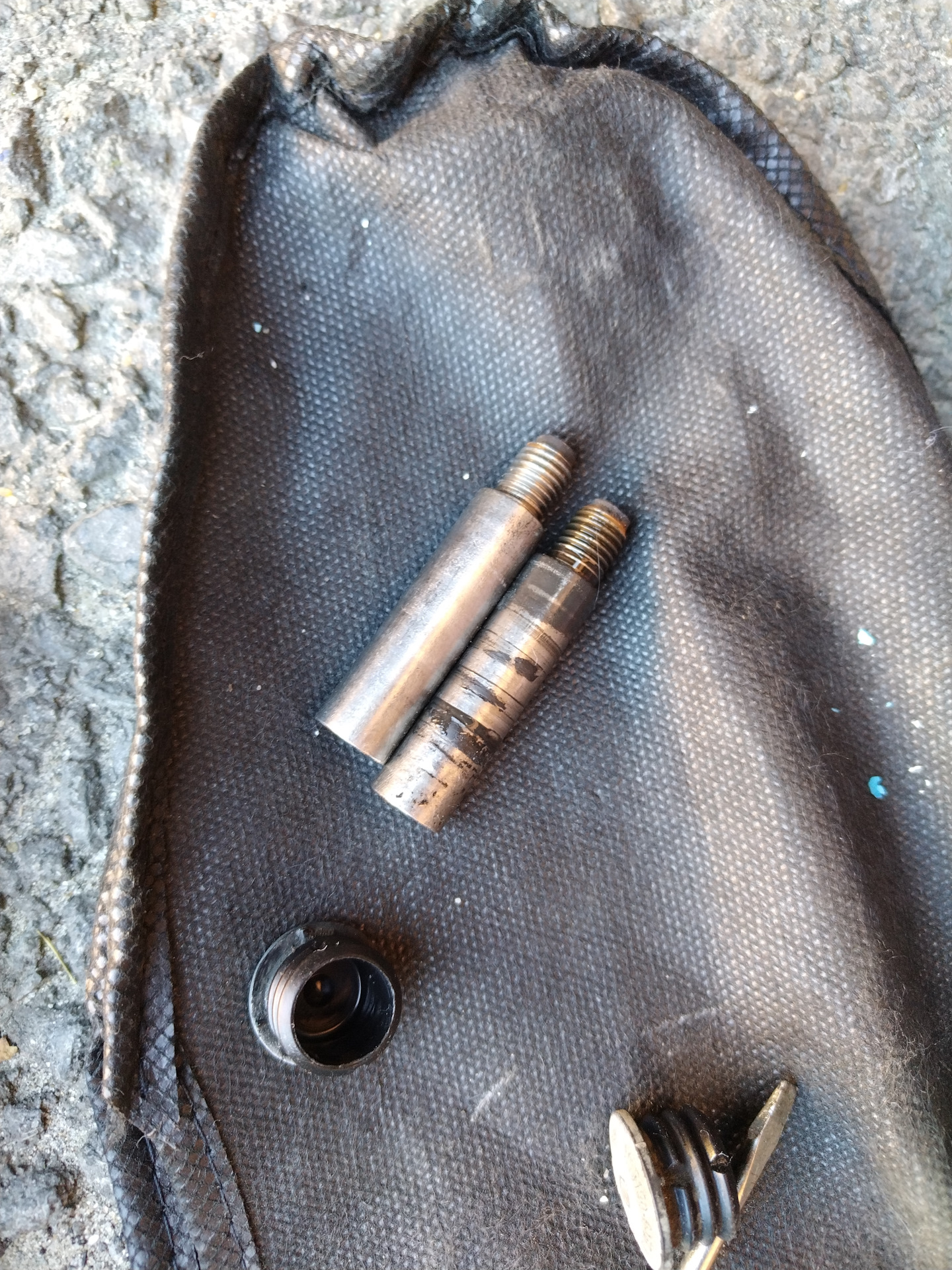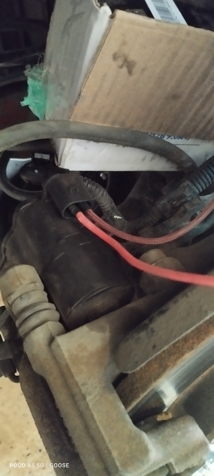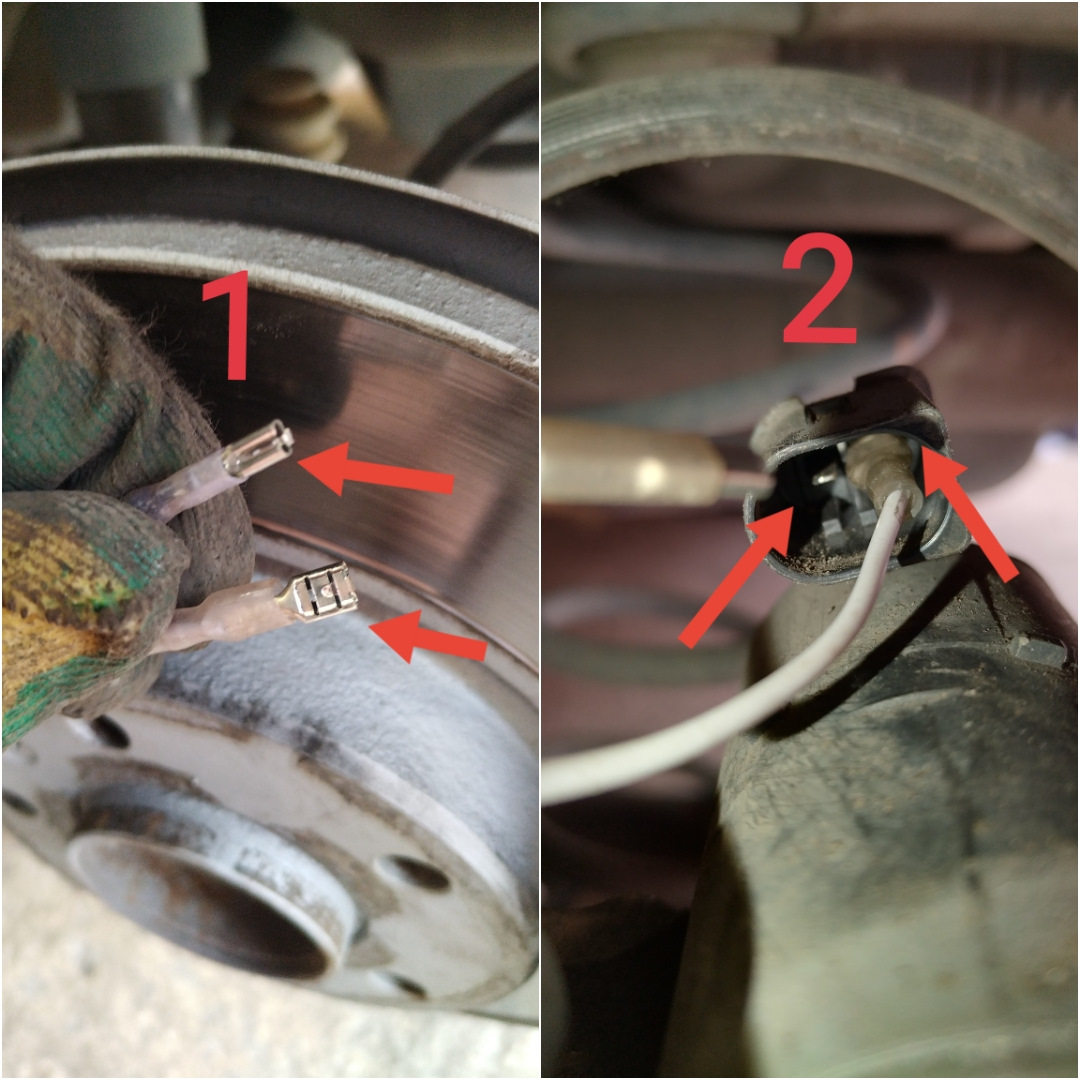 Так как у меня аккустические провода, то на них есть клемы. Одну мы одеваем на питание самого электро ручника, а вторую просто накидываем на второй выход питания и смотрим… Если поршень вЫдавливается, т.е.сжимает колодки, значит меняем полярность, одну фишку одеваем на другой выход, а вторую фишку прикладываем. Отлично, поршень начал вдавливаться, но ему нужна помощь…