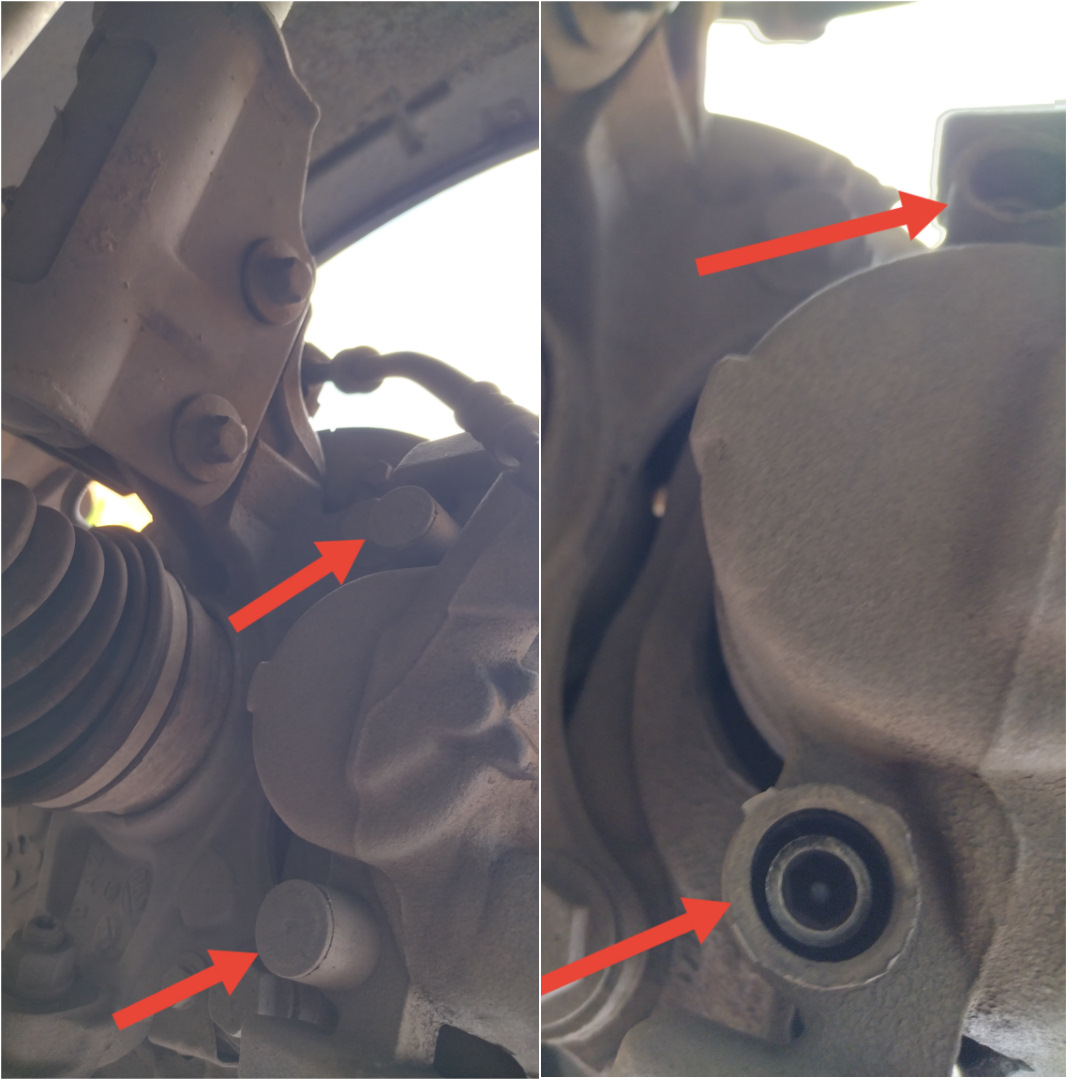 С обратной стороны суппорта, находим 2 заглушки и снимаем их, там у нас направляющие под ТОРКС 45 (или ТОРКС 50). Тем самым откручиваем суппорт.