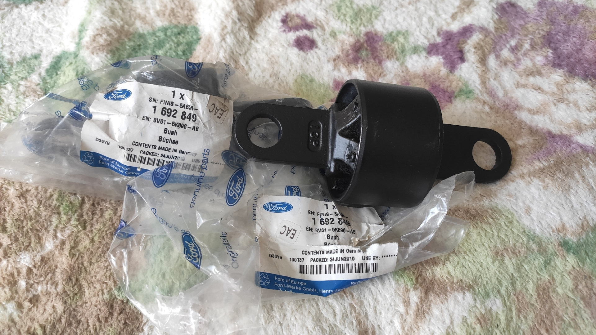 Сайлентблоки продольных рычагов(бабочки) Ford 1692849 то же выхватил на Авито по 2000р./шт. Очень удивлён был, что мне достались сайлентблоки made in Germany.