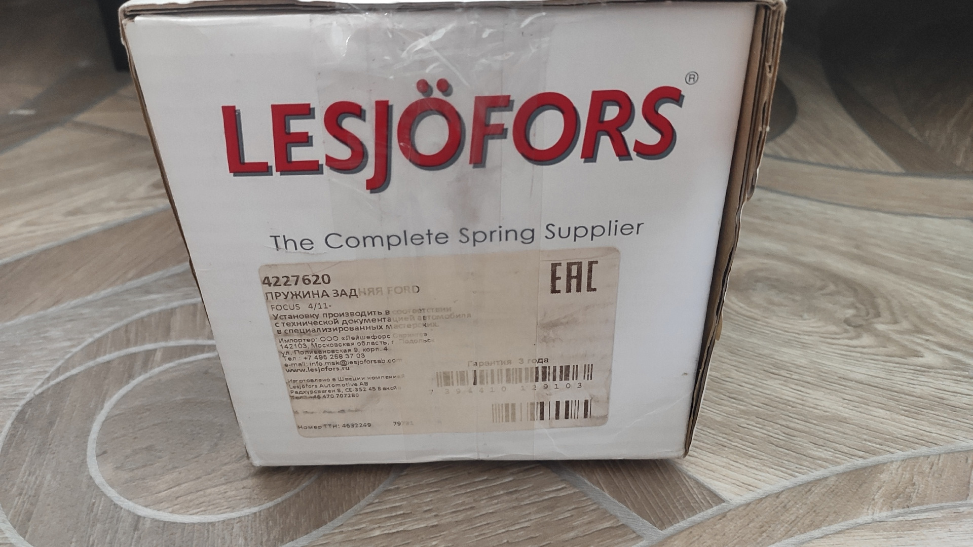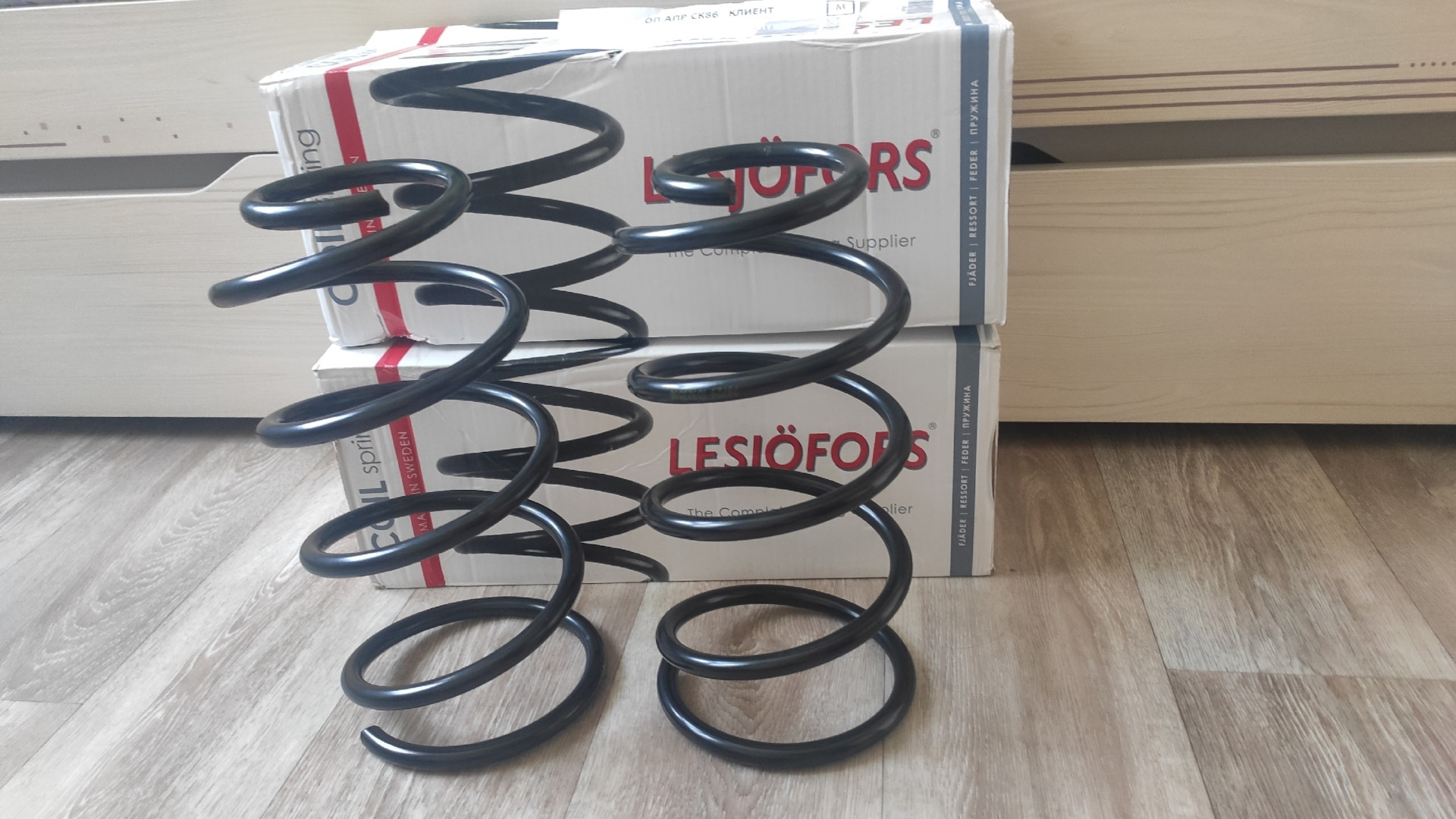 По передним пружинам выбор сделал в пользу фирмы Lesjofors 4027656. Ну и задние пружины решил взять этой же фирмы Lesjofors 4227620. Чтобы проверить их оригинальность проверял парт номера указанные на коробках и самих пружинах — всё совпало.