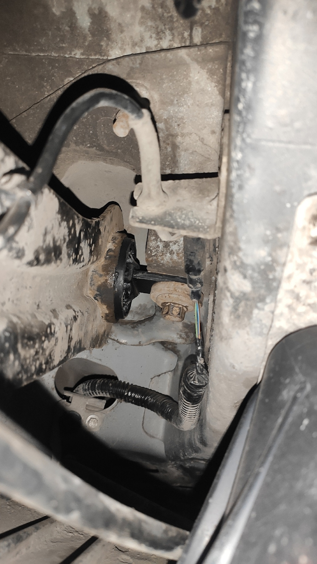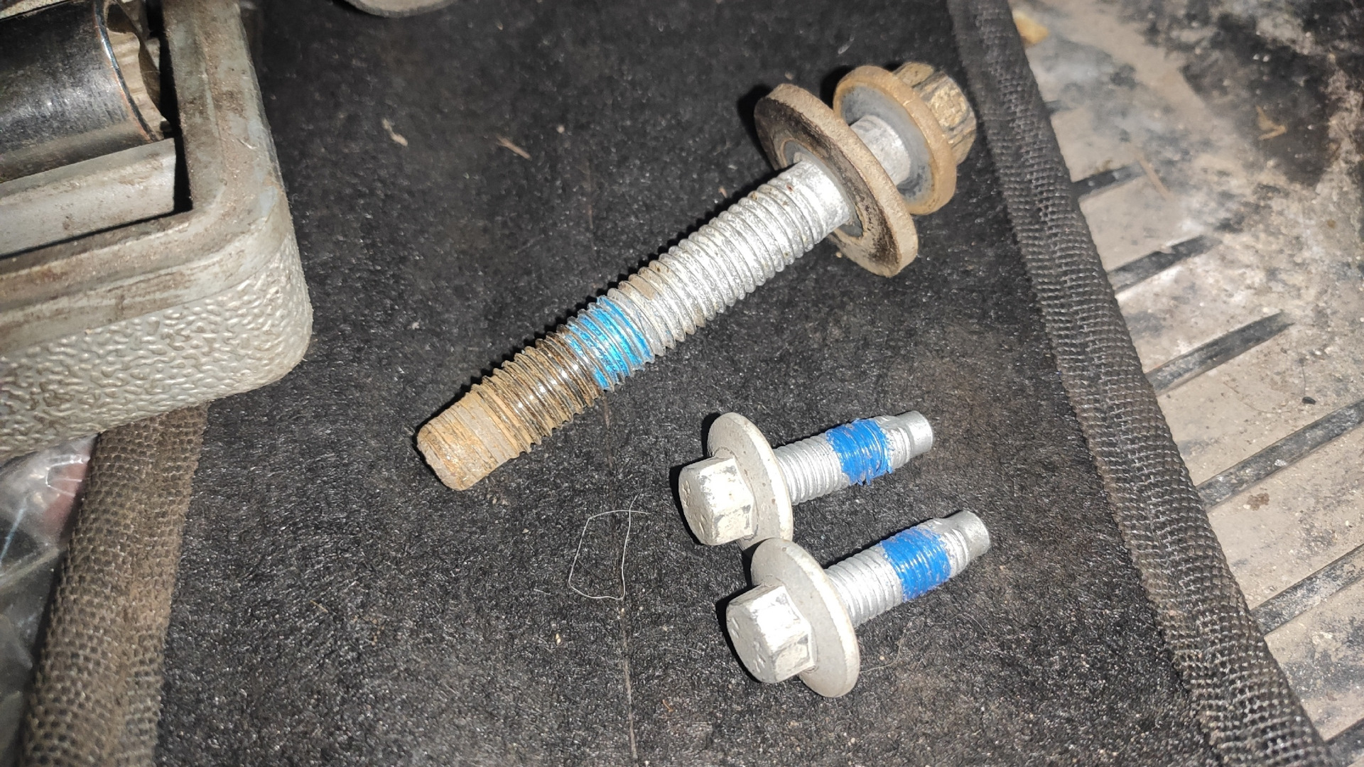 В этот же день еще планировал поменять масло и еще некоторые дела. Но всё это пришлось делать в ускоренном темпе, чтобы успеть на СТО на котором устанавливал то что было описано выше. А причиной тому как раз то что видно на фото с новыми сайлентблоками, а конкретно из 4х новых болтов было установлено только 2! Т.е. 2 болта, которые по нынешним ценам стоят 600р./шт куда-то исчезли!