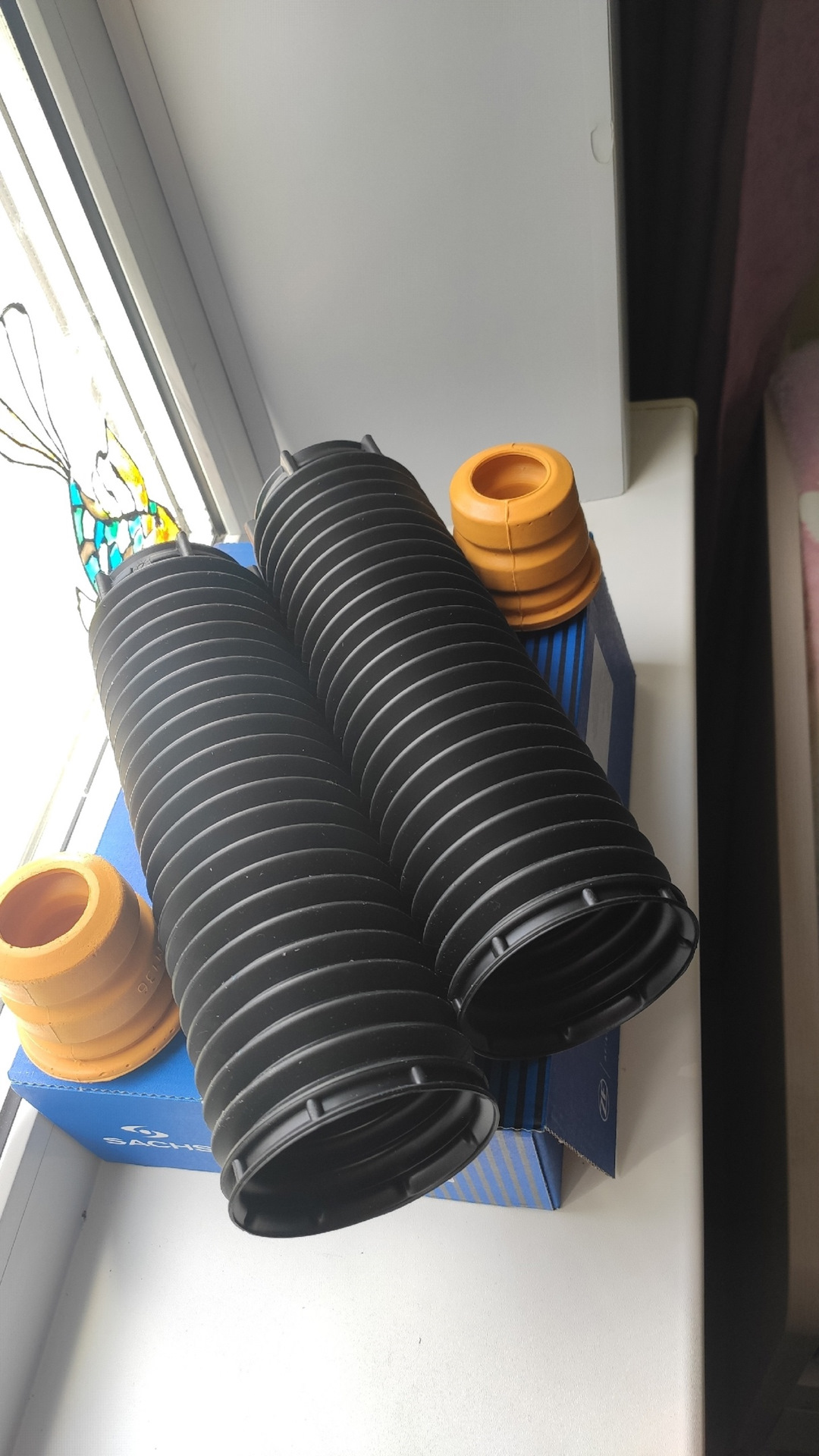 Пылезащитный комплект на передние стойки решил взять фирмы Sachs. Можно было конечно взять на порядок дешевле Kayaba, но т.к. я когда-то сталкивался с их резиновыми изделиями и был не в восторге решил не брать. Ну и стойки Sachs почему бы и пыльники с отбойниками не взять Sachs))