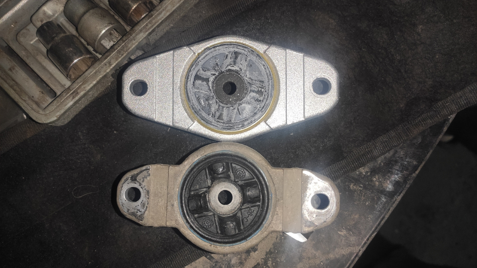 Опоры еще в хорошем состоянии. Обратил внимание, что родные опоры и новые купленные немного отличаются по форме. У новых есть дополнительные ребра.
