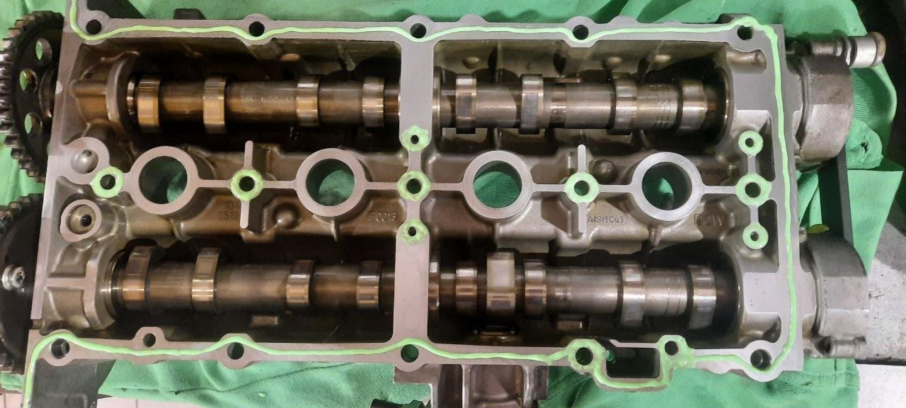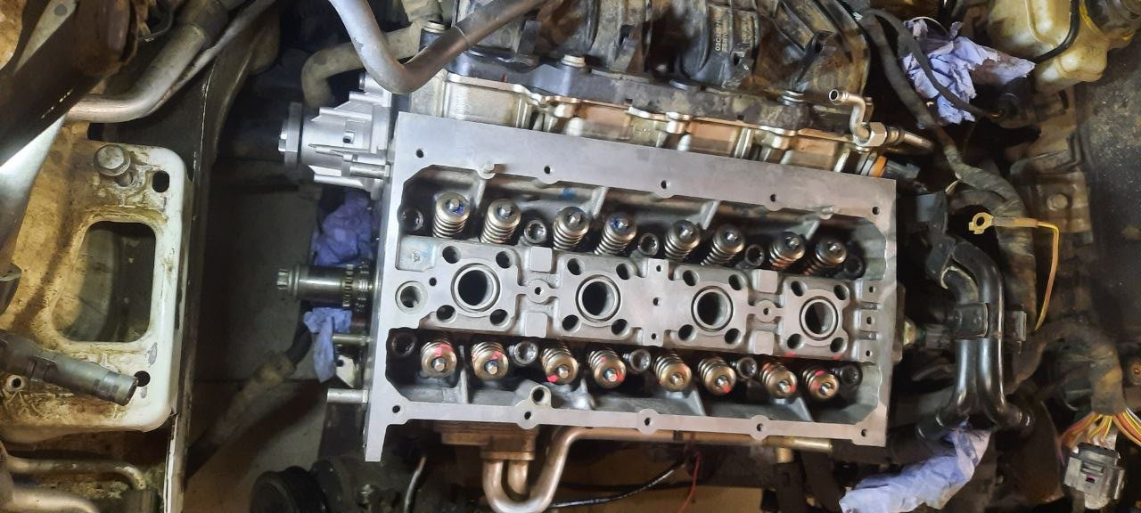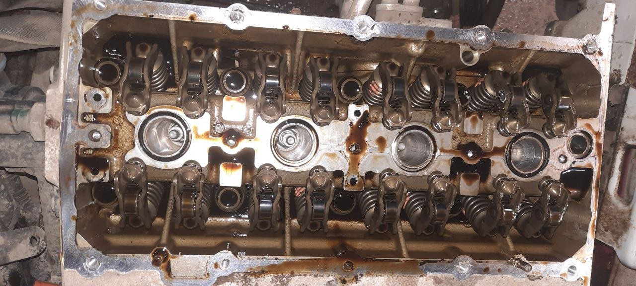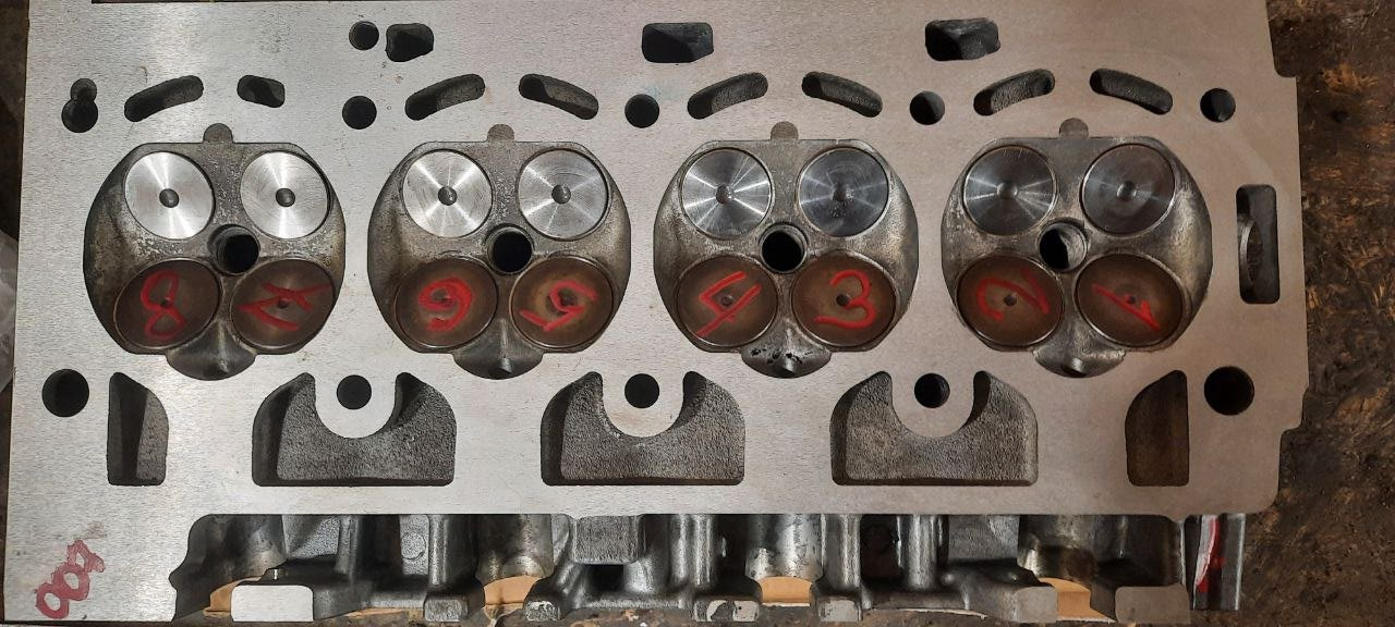 Переборка ГБЦ в профильном сервисе: опрессовка, дефектовка, правка седел и замена направляек выпуска, замена выпускных клапанов, очистка впуска химией, шлифовка привалки и запчасти (направляйки) = 18200