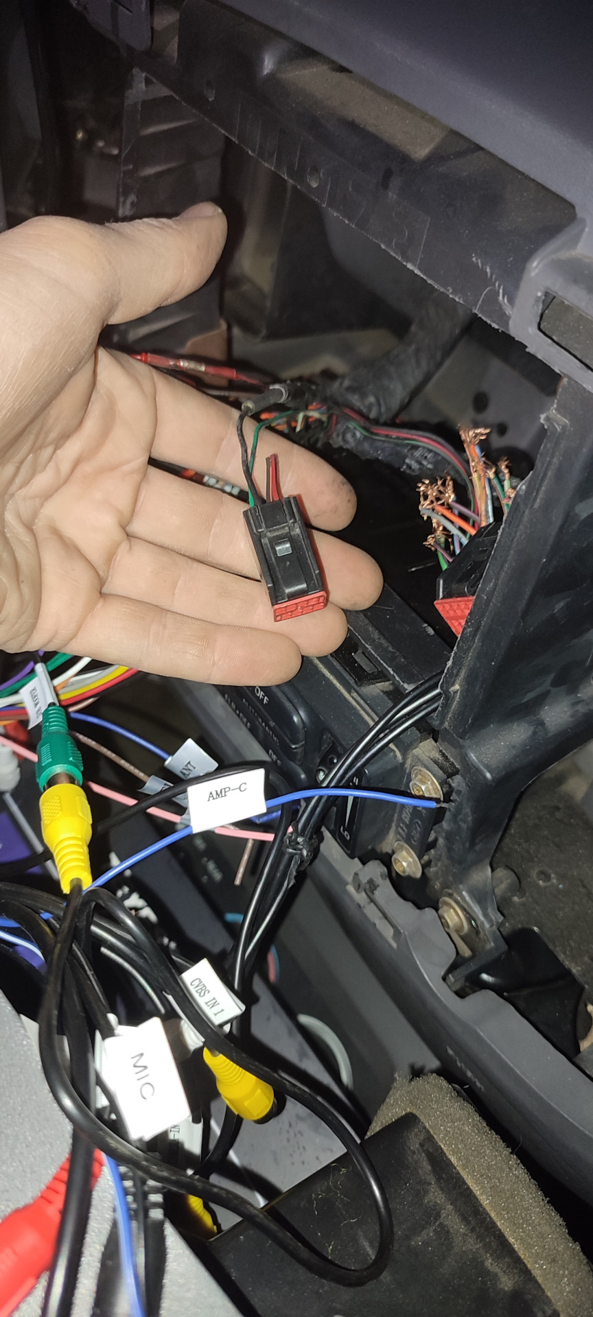 Саб надо подключать по слаботочке, чтобы сигнал шел не усиленный тк саб с усилком. Тогда он будет по уровню сигнала норм и сможешь его настроить с магнитолы. Подключил все максимально по родной схеме без колхоза — работает отлично. Лайфхак — если ловит наводки какие — вытыкай мы антенну