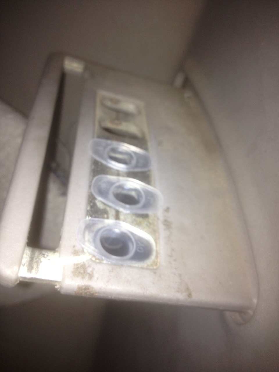 И только на Драйв2 прочел о простейшем решении данного вопроса. Покупаем в аптеке медицинские шприцы объемом 2 см3 (количество равно кол-ву дырок в пластине фиксации, которые вы хотите "вылечить"). Берем нож, отрезаем примерно 7 мм (если больше, то спинка будет сминать шприц), втыкаем.
