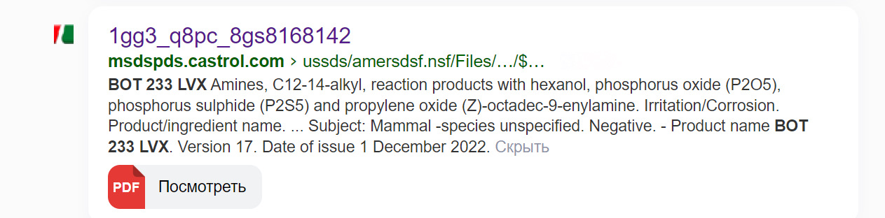 Итого, есть ниточка «Castrol BOT 233 LVX» по которой можно копнуть глубже…