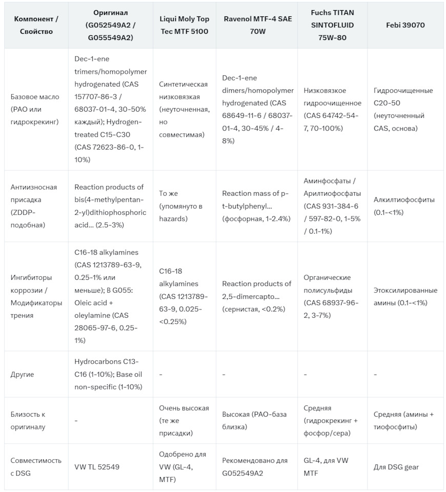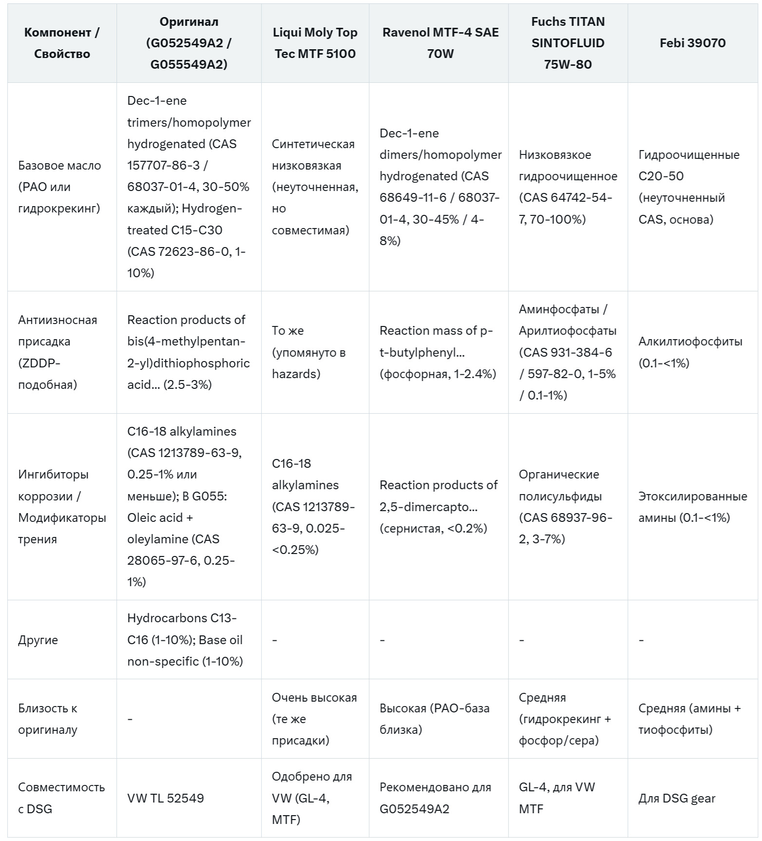 Я не знаю, почему VAG выбрал PAO, и возможно ли поменять это на гидрокряк. Вероятно — да, но какие последствия будут — абсолютный хз. Целью данной заметки был подбор максимально близкого аналога, а не максимально дешевого. Любой попандос на коробку — многократно дороже, но по статистике DL382 — не особо то и капризная… Я бы искал похожее по составу, т.к. не могу оценить всех рисков