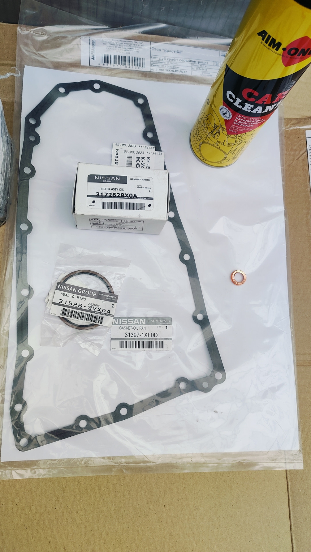 Приобрел фильтр и прокладку к нему. Приобрел шайбу сливной пробки. Не хотел снимать поддон, но всё же решил снять и поэтому приобрёл прокладку поддона.