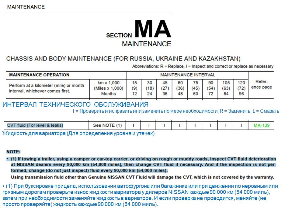 Ни у Nissanа (производитель автомобиля, ни у Jatco (производитель вариатора) — нет указания, что нужно менять жидкость в вариаторе на 60 тыс. км или через 4 года.