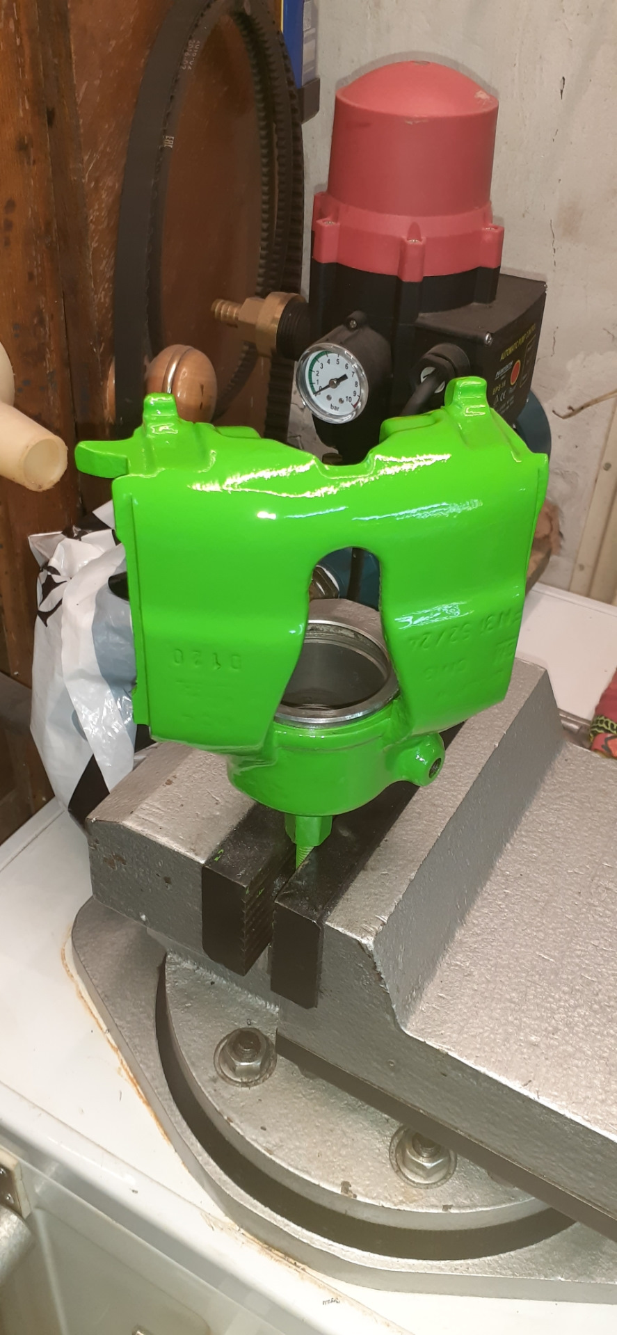 Процесс этот не из быстрых, потому как при покраске делал полную ревизию, да и если красить качественно то только полный разбой, а в висячем состоянии на тормозном шланге нормально не получится .