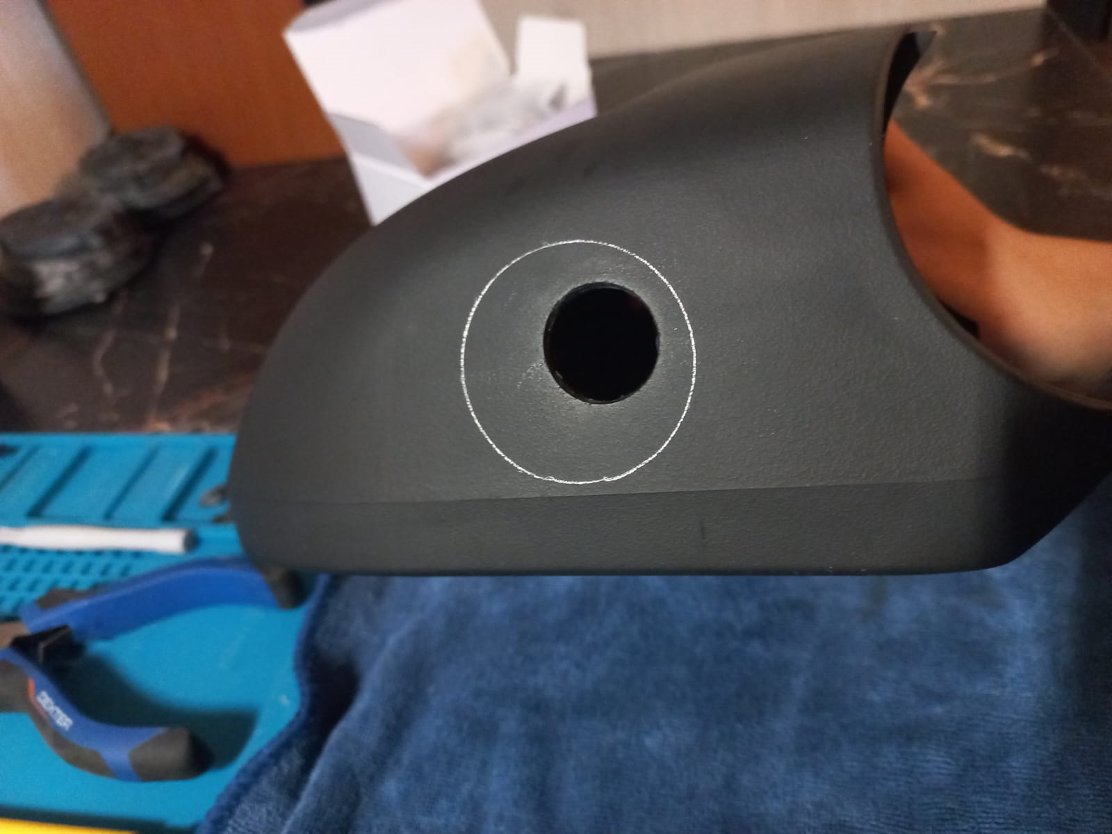 Разобрал зеркала, нанес разметку и установил плафоны в корпус.