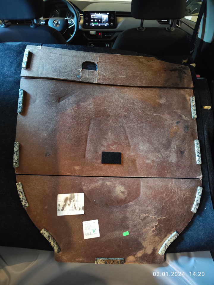 После того, как один раз я разлил немного воды в багажнике, его состояние даже после сушки, оставляло желать лучшего. Смотрел оригинальные варианты, цена либо конь, либо такие же ушатанные, недавно наткнулся на пост в ветке 1 поколения рапида и понял, что это то самое. Сделано добротно, цвет карпета, размеры совпадают, материал уже фанера, а не оргалит(как у заводского) который мнется от любой нагрузки и не держит ее(хоть и редко что-то перевожу).