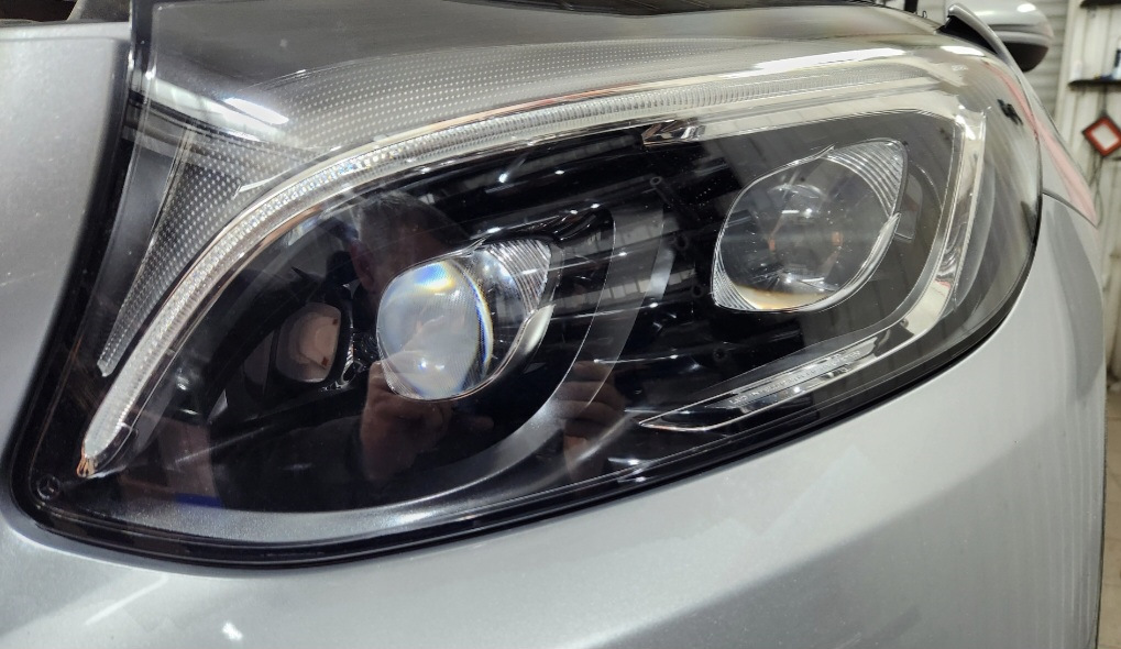 На моем GLC завода установлена 2-ая камера (опции уход с полосы, адаптивный круиз итд, чтение знаков), но фары были установлены обычные светодиодные (HP) с одной линзой.