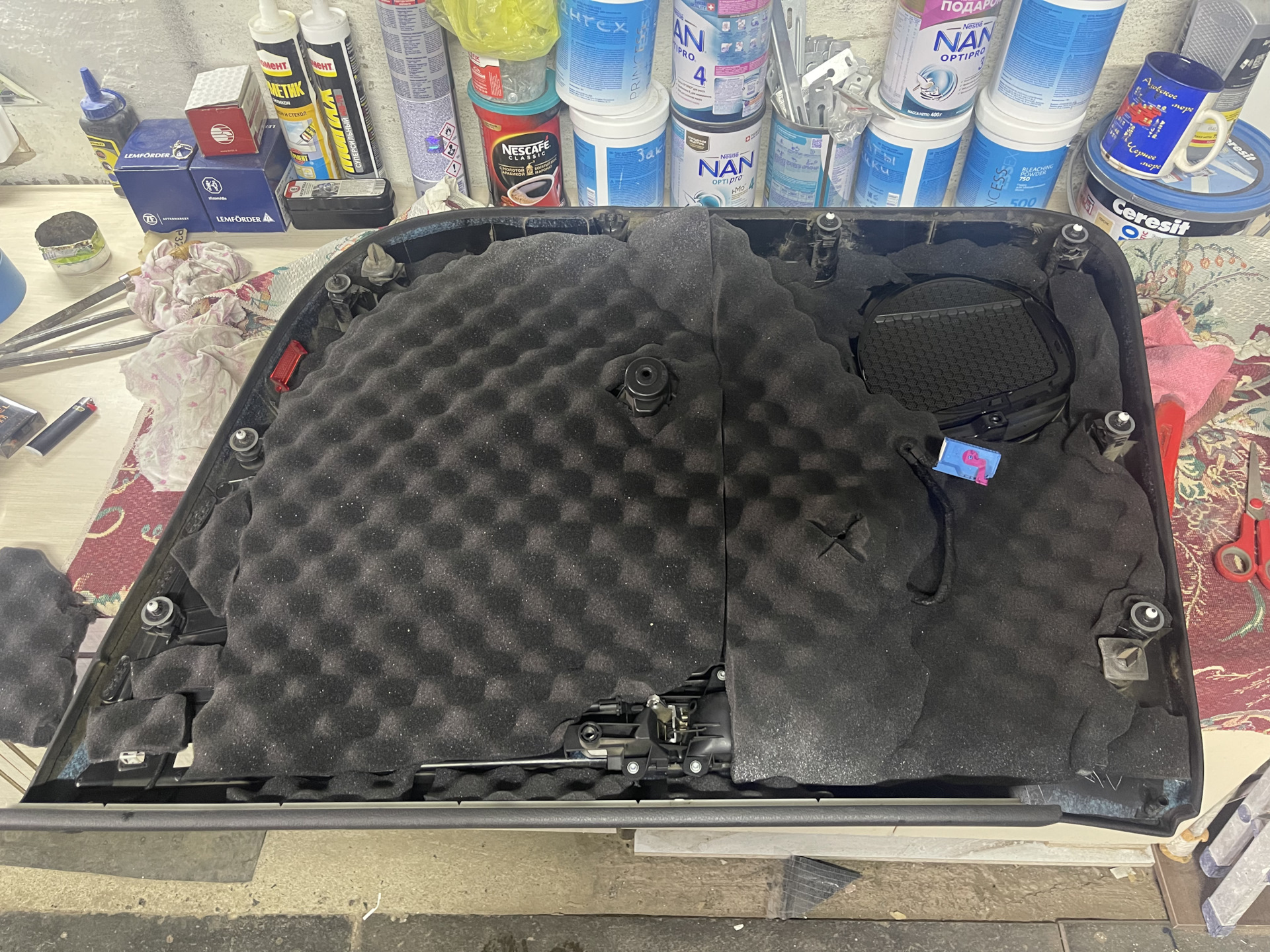 Ну и чтобы от проставки не было пластмассового звука, нанес виброизоляцию сверху. В принципе ничего сложного нету.