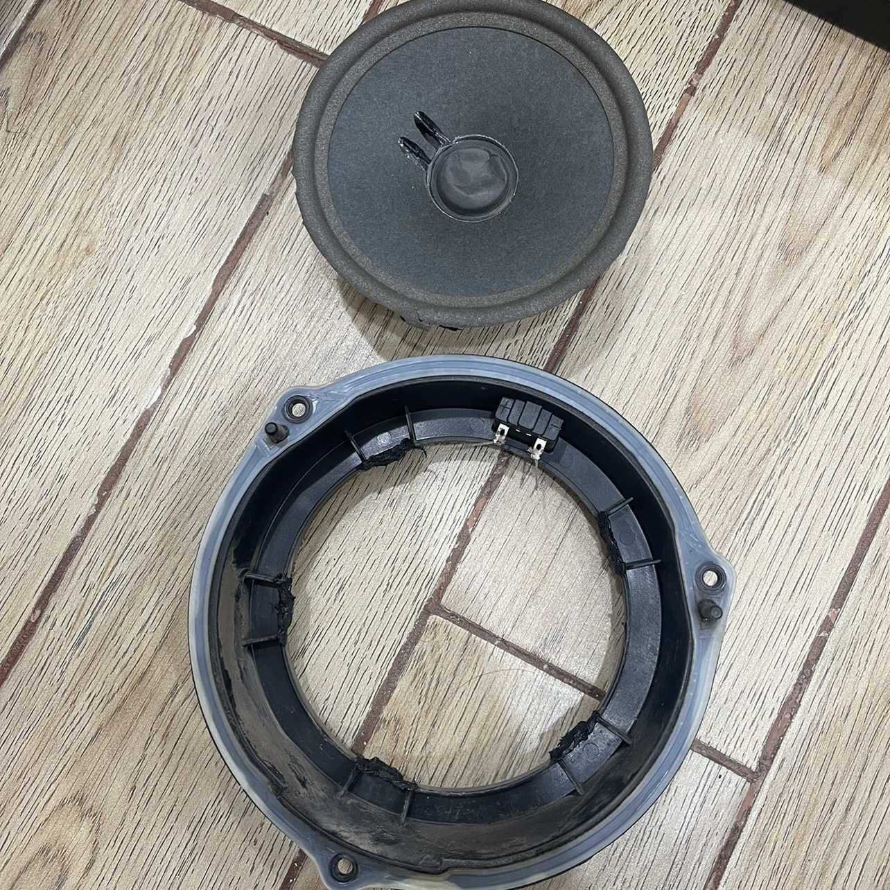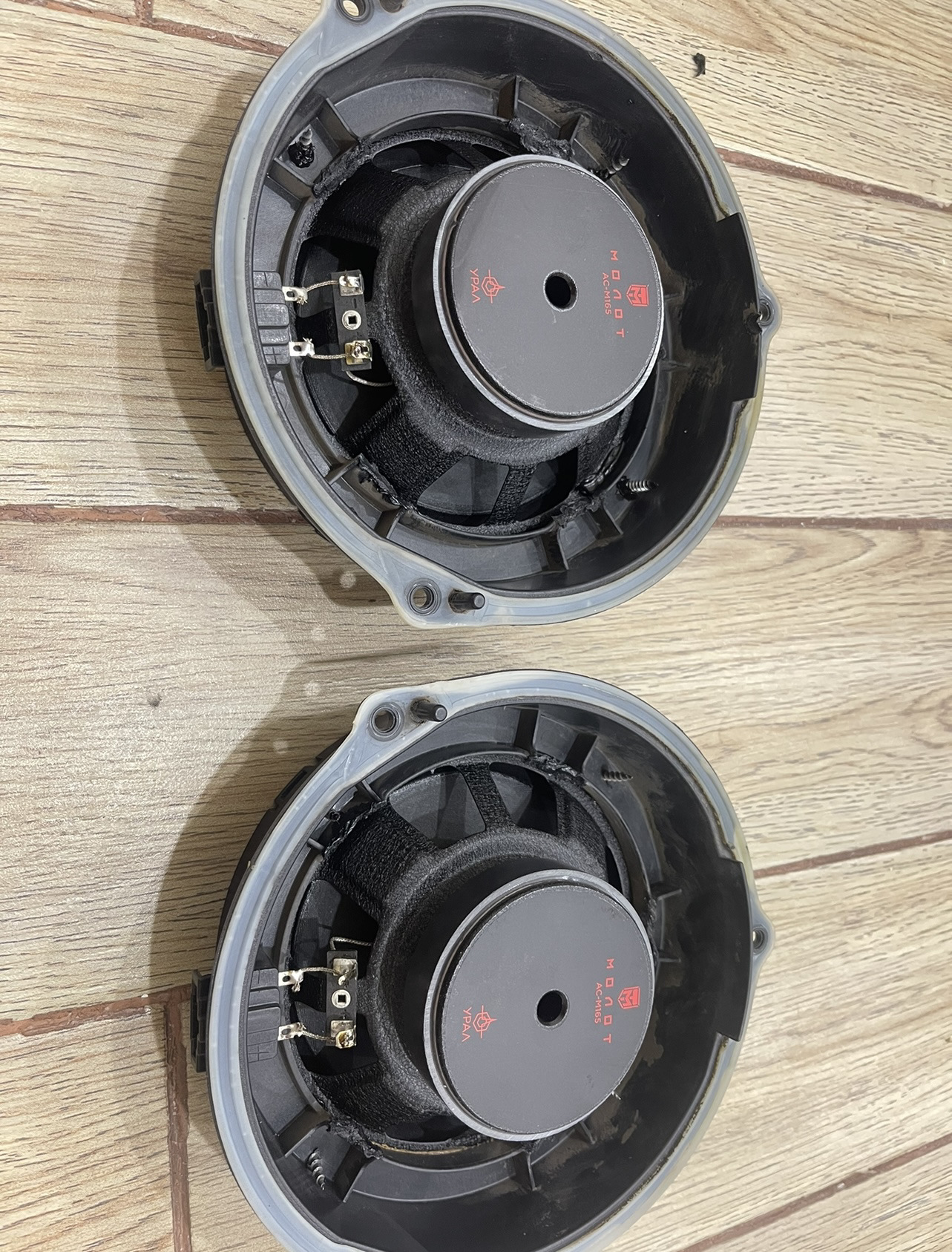 Вырезал старые динамики со штатных проставок, припаял два проводка, плюс и минус.