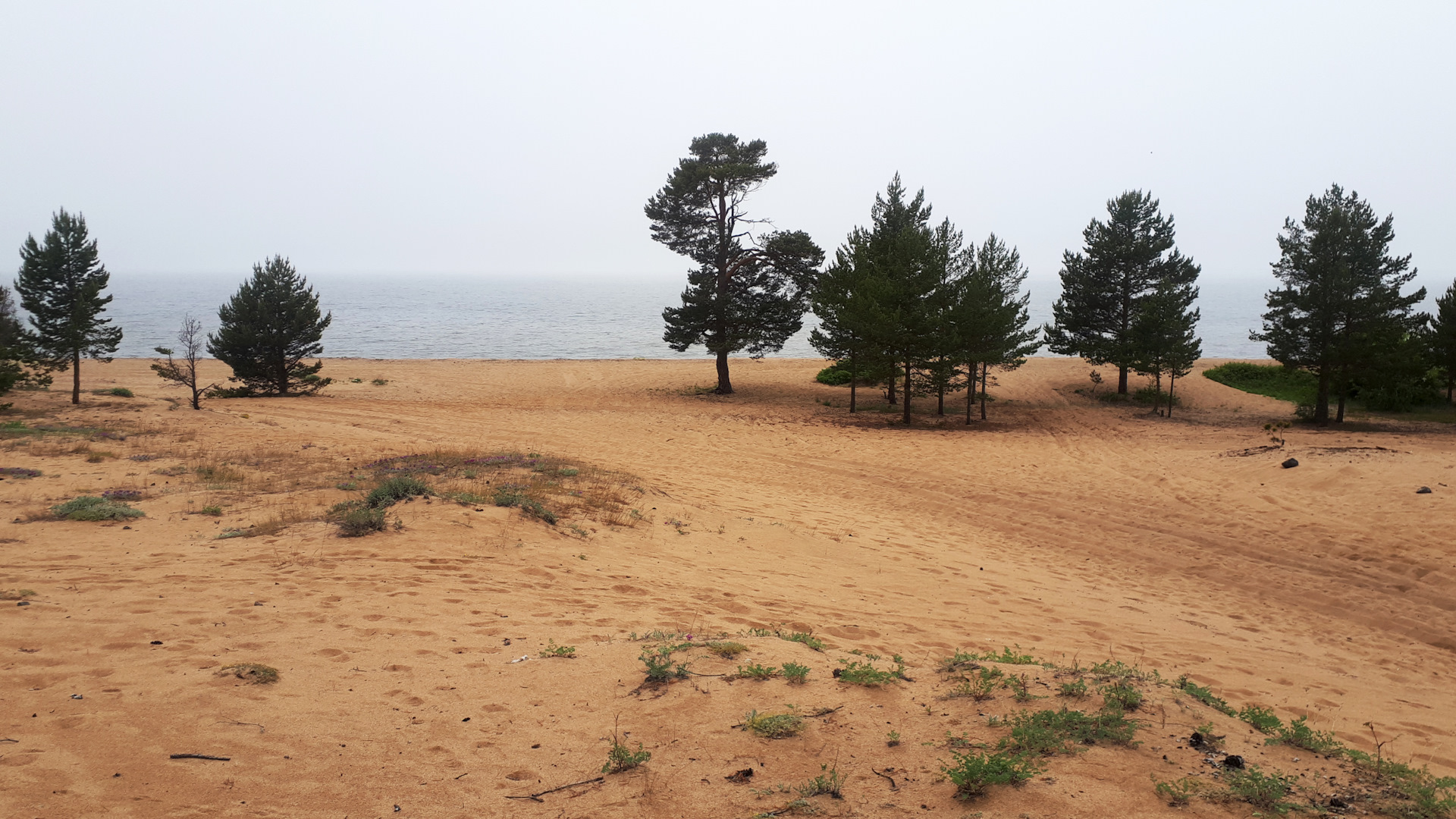 Побережье песчаное, встречается каменистые участки, есть трава, кусты, деревья. Есть места и с глубоким песком. Так что, на моноприводе аккуратнее заезжаем! )