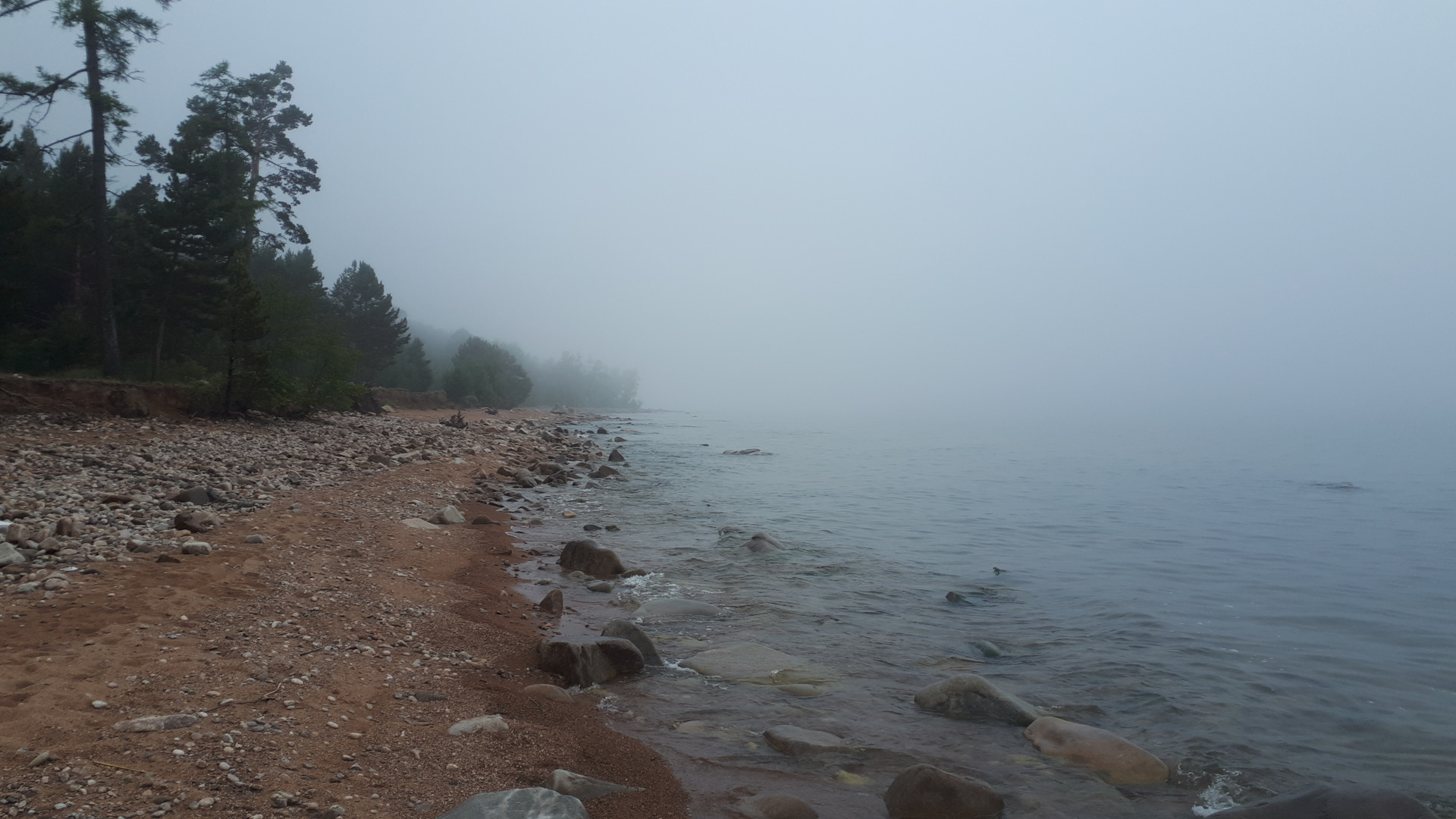 Густой туман скрывал весь Байкал, и лишь шум волн выдавал его присутствие.