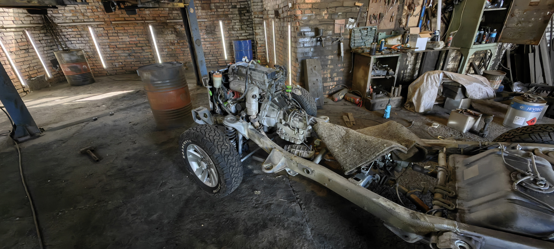 Теперь ее готовить под проект, чистить, переваривать крепления, тюнинговать… В идеале хочется сделать горячую оцинковку на заводе. Где окунают там во всякие ванные протравочные, и в горячий цинк. Потом покрасить, залить пушсалом-растстопом и больше к вопросу рамы в обозримом будущем не возвращаться.
