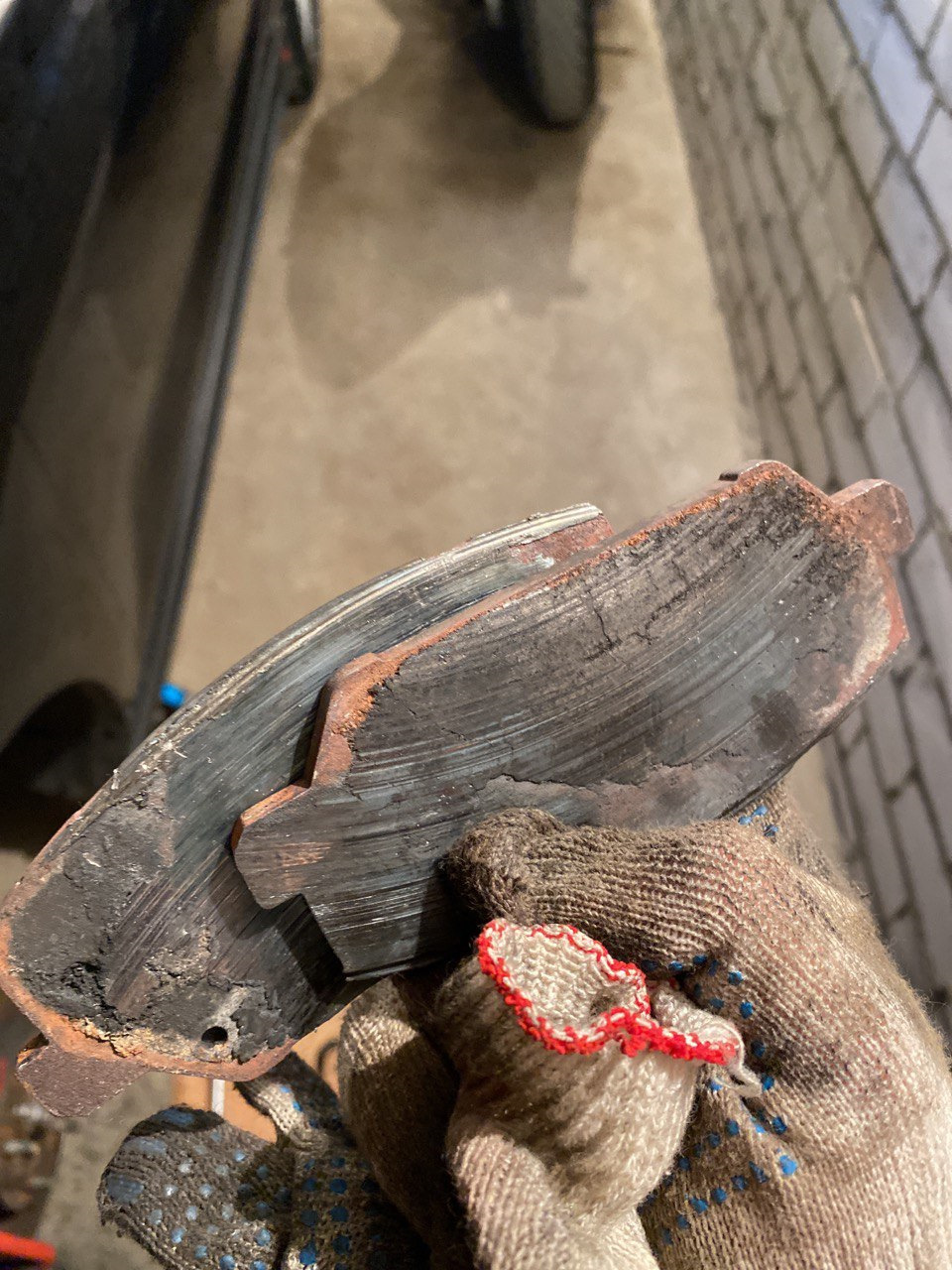В начале второй услышал подозрительные звуки спереди при торможении. Съехал с трассы — все — таки закончились колодки.
