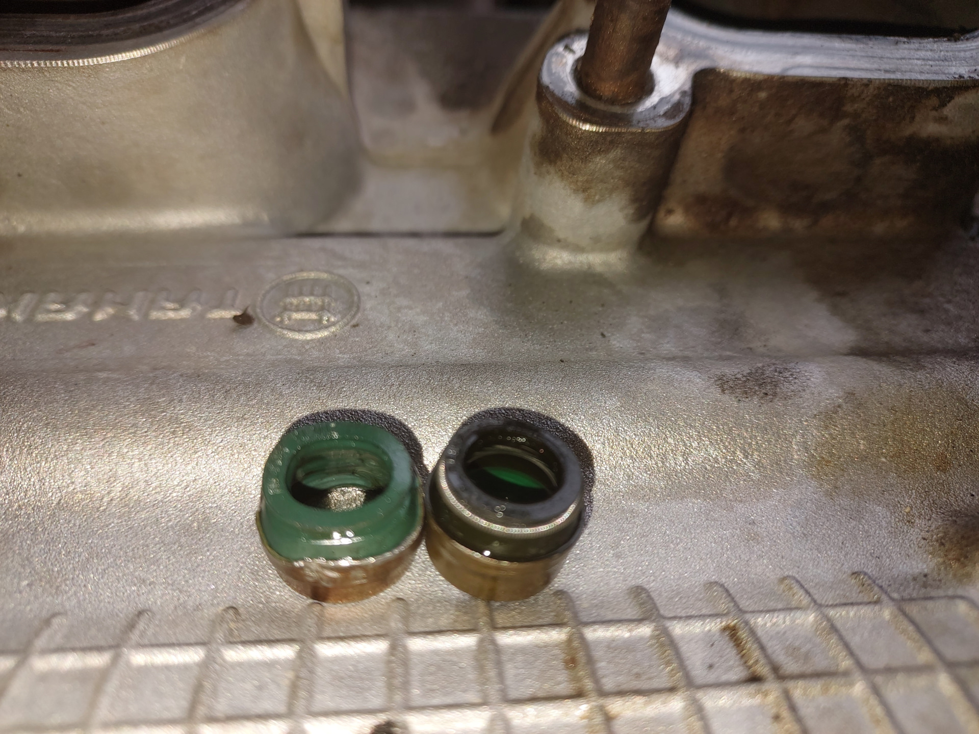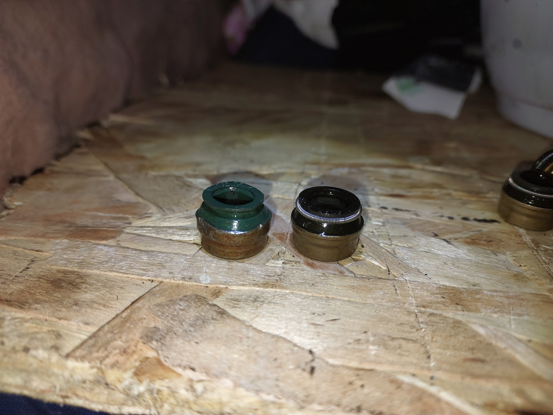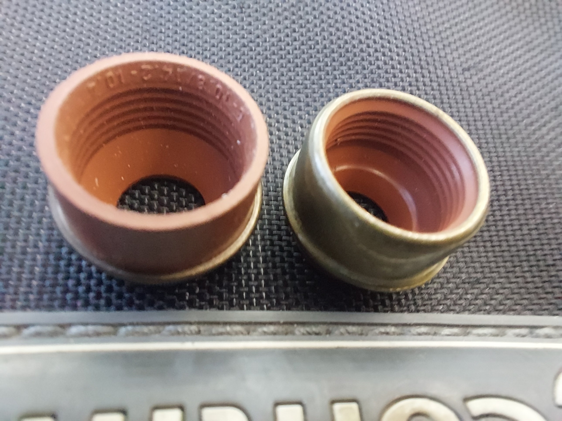 Во время капиталки поставили Виктор Райнц, но упакови были от разных магазинов и колпачки отличались по оттенку, в итоге 8шт на выпуске сидят плотно, а на впуске слетели все и дубовые стали, и какие из какого магазина — уже ни кто не помнит. Слетели они видимо сразу, так как масло поджирало изначально, думали притирается, а нет, это колпачки, компрессия 12,5 — 13, мотор едет.