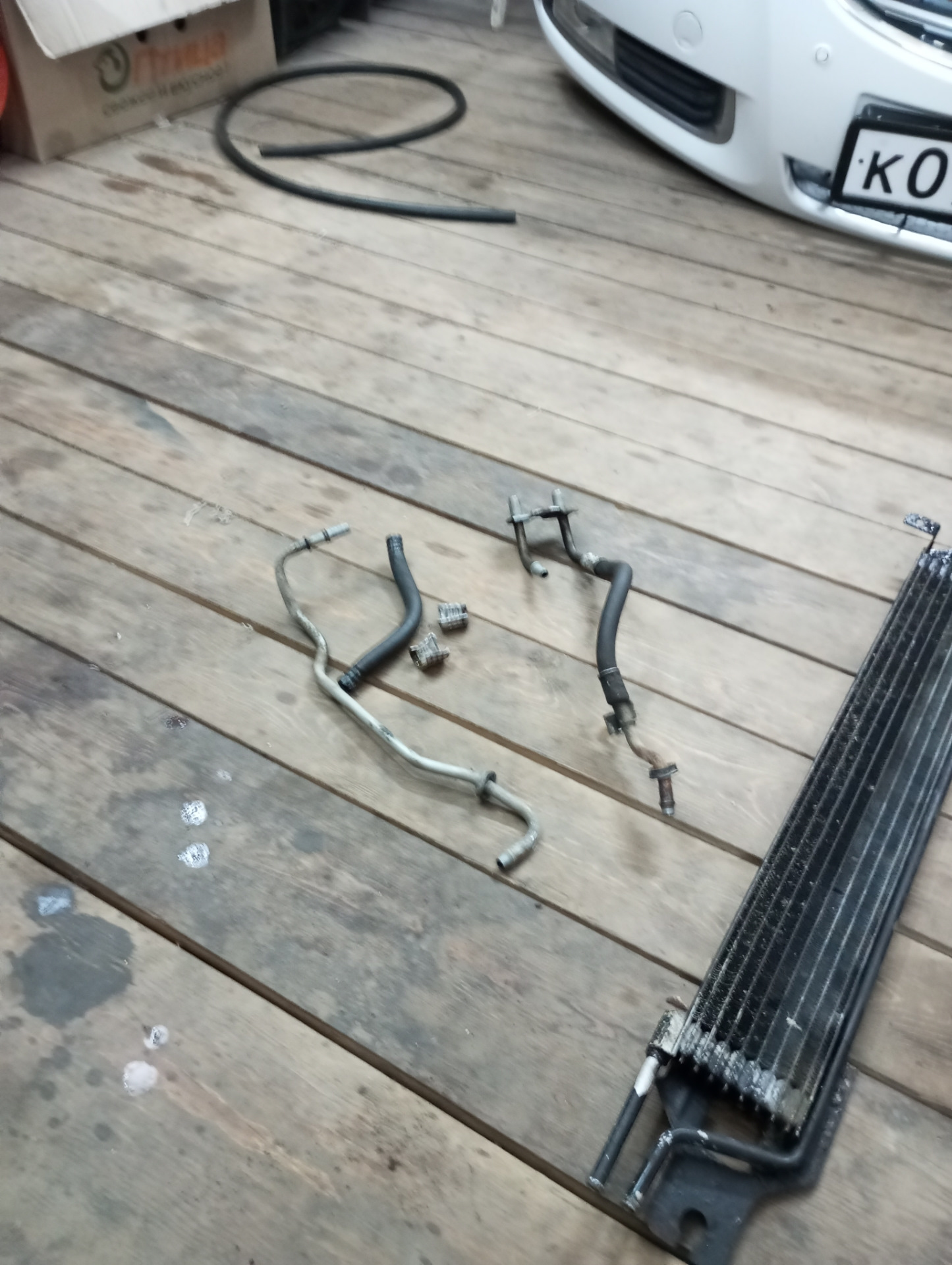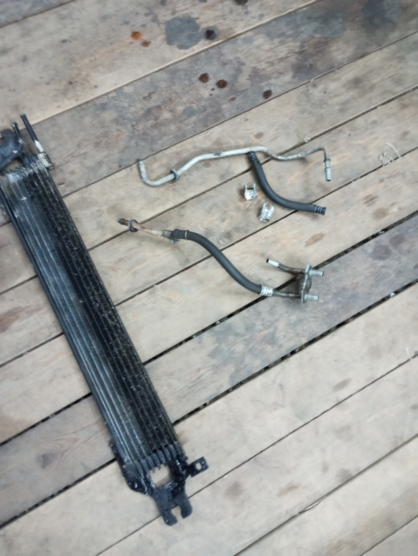В июне задумался о доп радиаторе, перед поездкой на море. Начитался D2, на Авито купил радиатор от Мазда СХ7, б/у в хорошем состоянии. Шланг давно был от Газели (не знаю точно куда он там). Перед установкой помыл пакет радиаторов, частично разобрав.