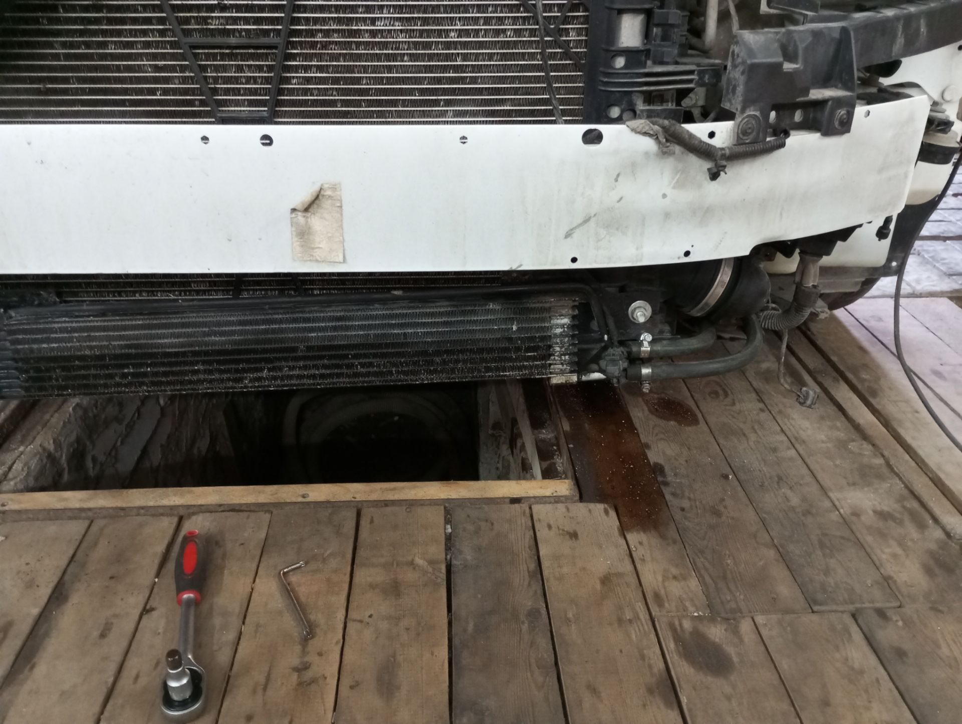 Перед тем как ставить всё это дело, нужно слить масло. На тот момент эта была третья частичная замена. Масло слилось относительно чистое, но нужно оговориться, что делал две предыдущих замены с промывкой АКПП.