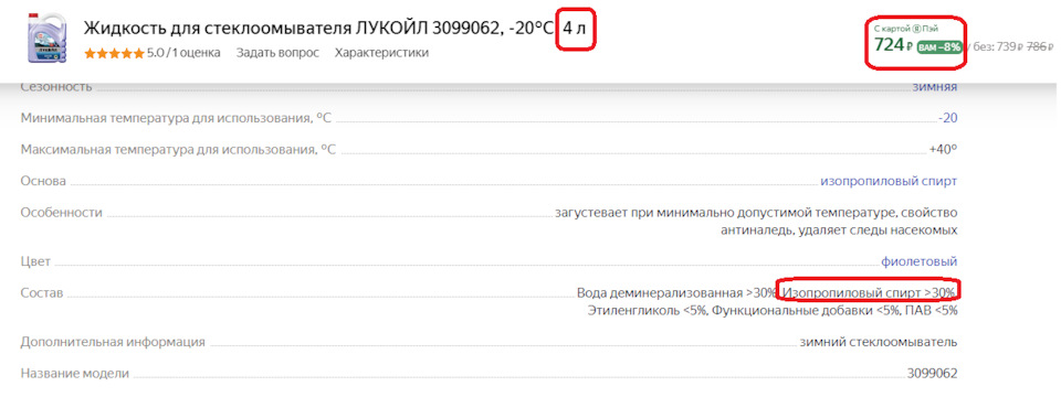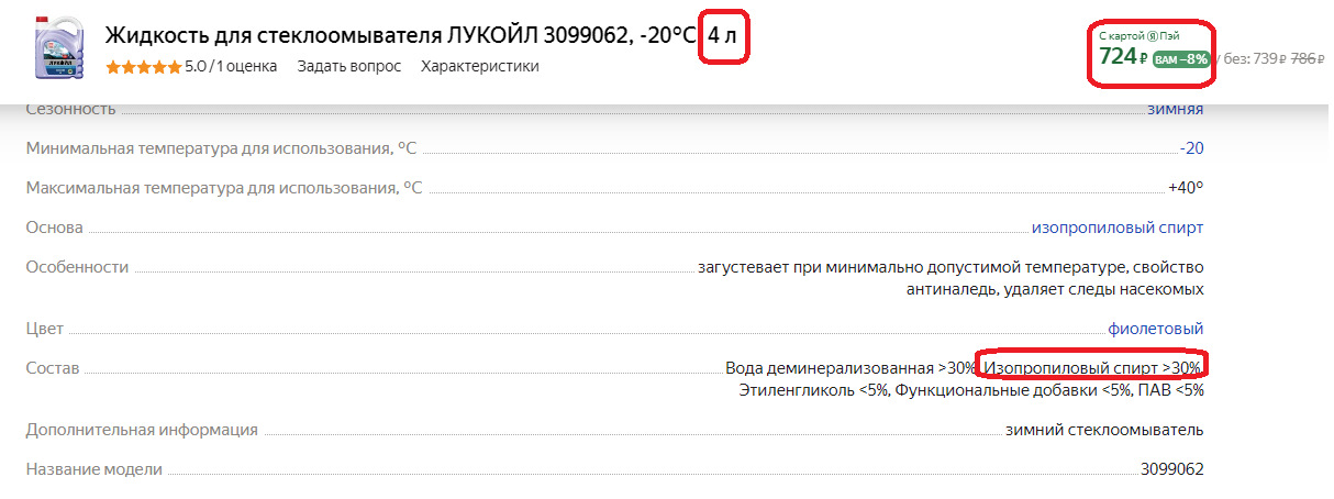Если сравинить с Лукойлом, то почти в два раза дешевле. Они одни из немногих, кто честно пишет состав — не менее 30% спирта в составе. Т.е. учитывая этиленгликоль и другую химию, можно ожидать честные -20.