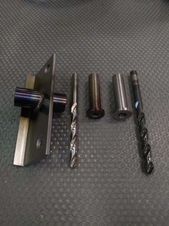 Потом нужно было сделать отверстия для маслофорсунок, для этого запилил набор. Довольно удачная конструкция вышла, втулки вращаются вместе со сверлом и отверстия не разбиваются, особенно если смазать)))