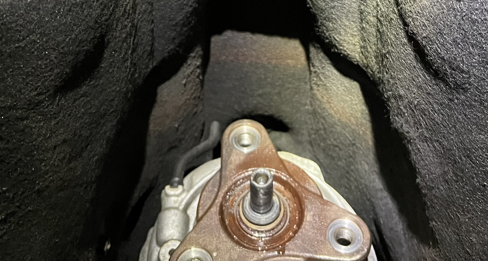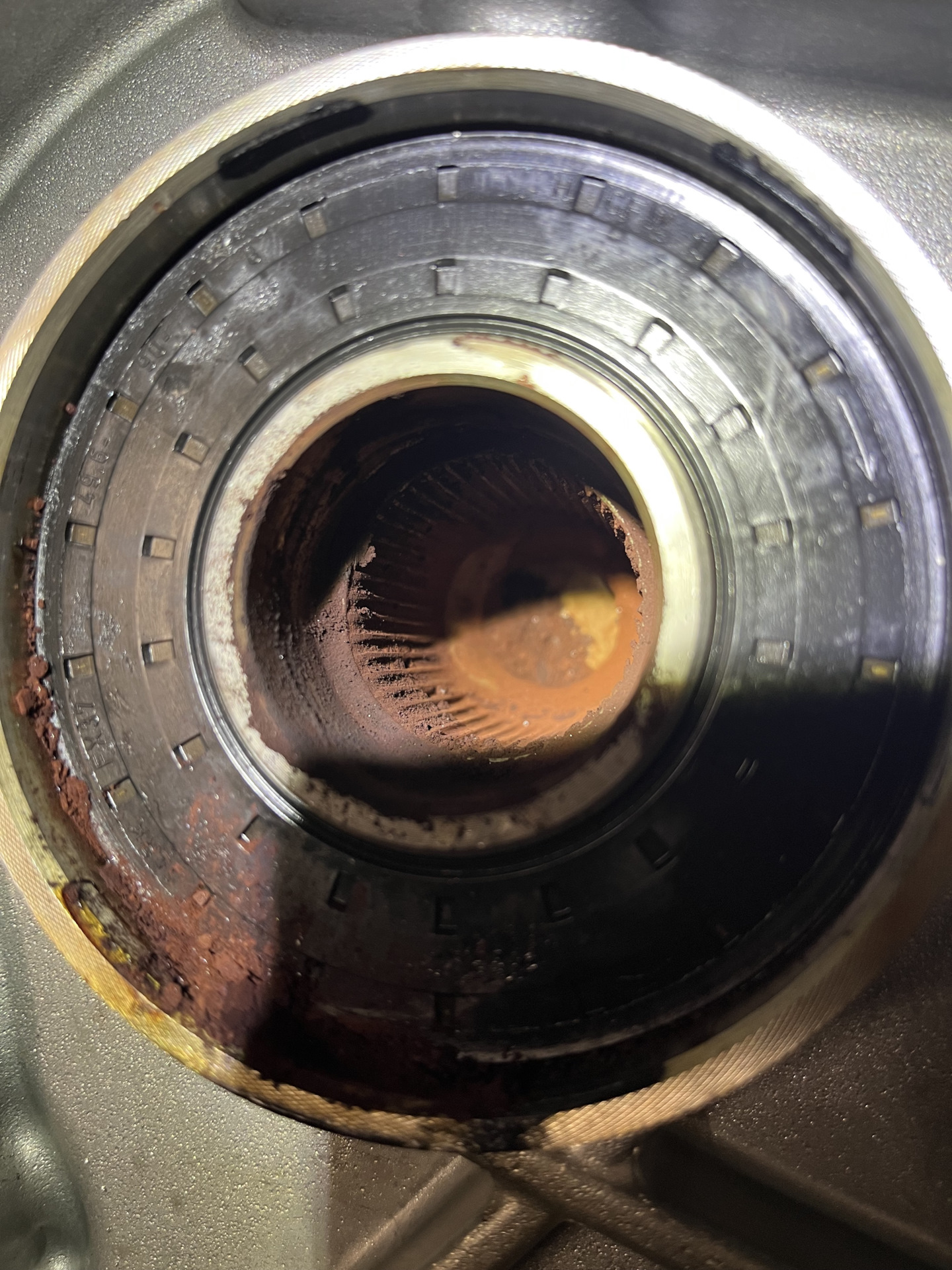 Ржавый ободок на шумоизоляции и жижа — это масло из-под сальника с частями шлицов, соответственно, есть люфт.