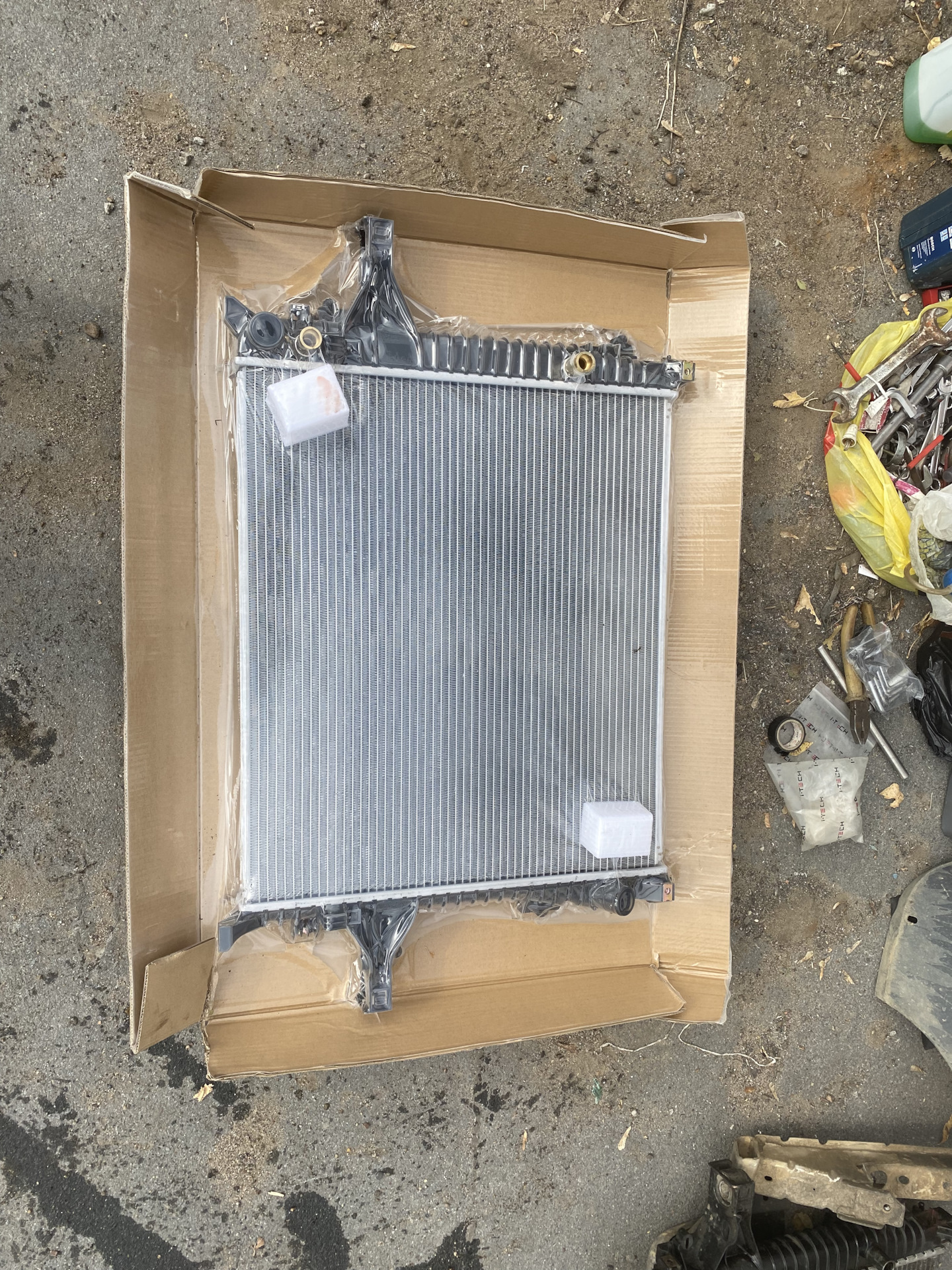 Ну и имейте ввиду что патрубки придётся сразу менять на новые, потому что вход выход с радиатора по диаметру меньше чем у оригинала. У меня просто небыло возможности купить радиатор по дороже поэтому брал этот.