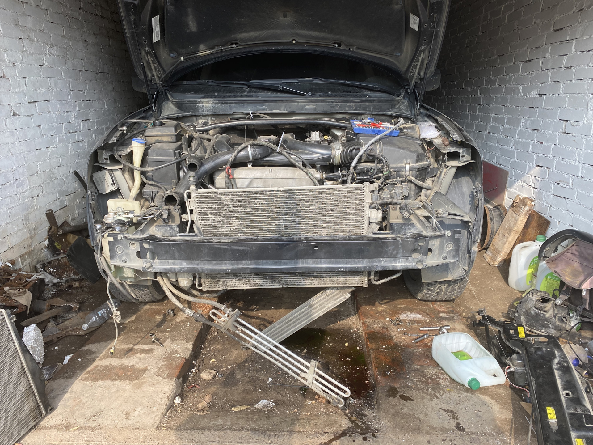 Подьемник хорошая штука, раньше в сервисе на нем все делал-удобно. Сейчас свапаю на полу гаража-привык.