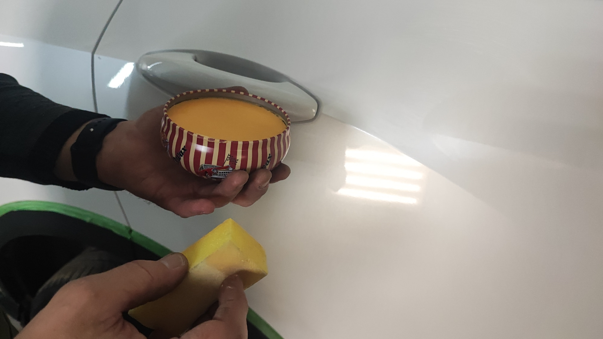Вчера, после того как Фикс был окончательно собран и отполирован после ремонта мы решили испробовать твëрдый воск. Инструкция по применению простая, нанесли/подождали/располировали. Примерно за час, неспеша и с перекурами справились.