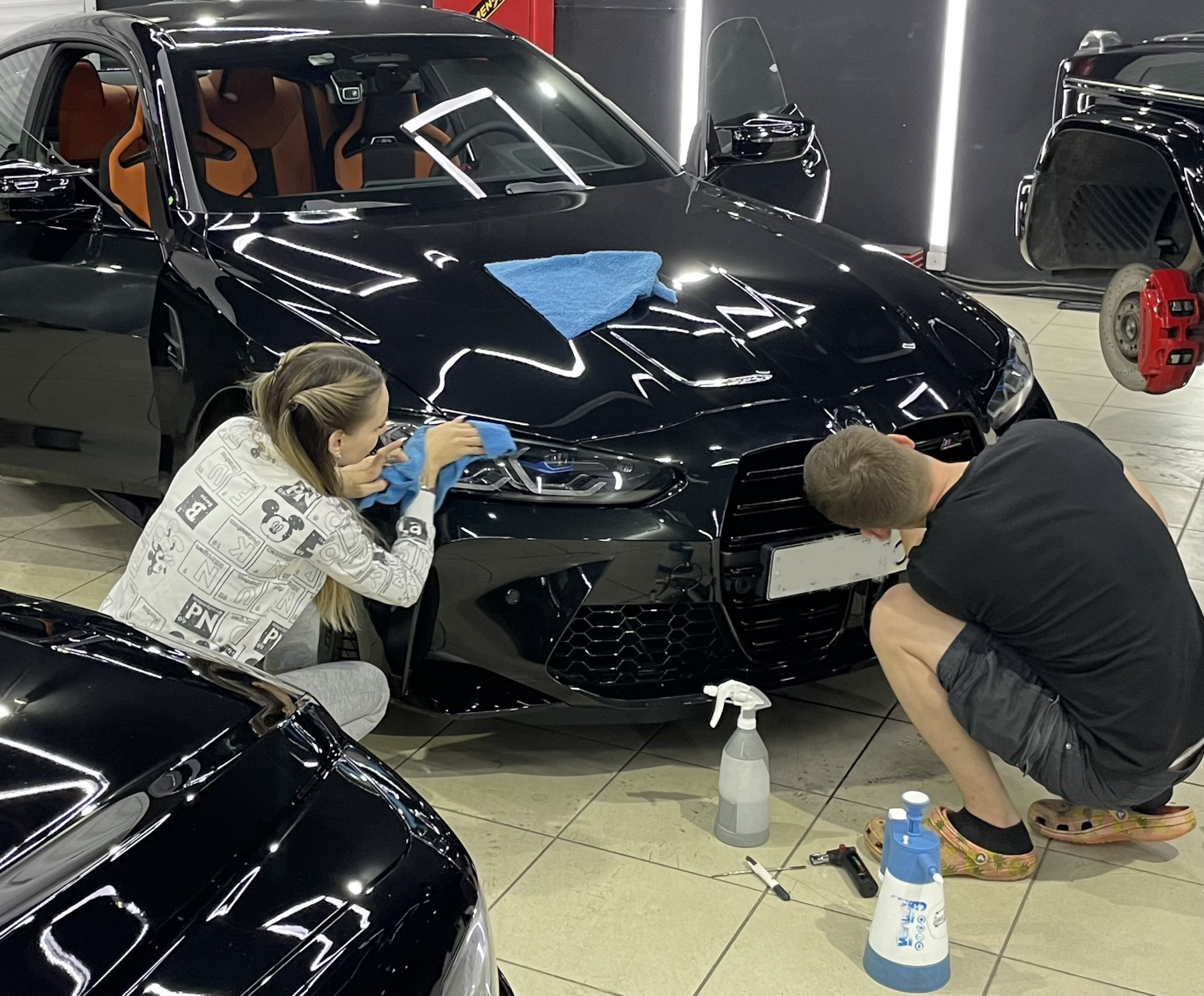 Хотя, пожалуй, есть чего. Мне очень нравится, когда автосервисы и тюнинг-ателье не хватаются за все подряд, а «живут» каким-то одним, понятным им делом, достигая в нем совершенства. И когда сами беспокоятся о качестве своей работы. Ребята из Brothers-Style, из их числа. Примерно через неделю после оклейки звонят и просят заехать для осмотра и потом скурпулезно ищут свои мелкие косячки, на которые я бы может и не обратил внимания. Дотягивают и доклеивают углы и т.п. Вот как это выглядит.