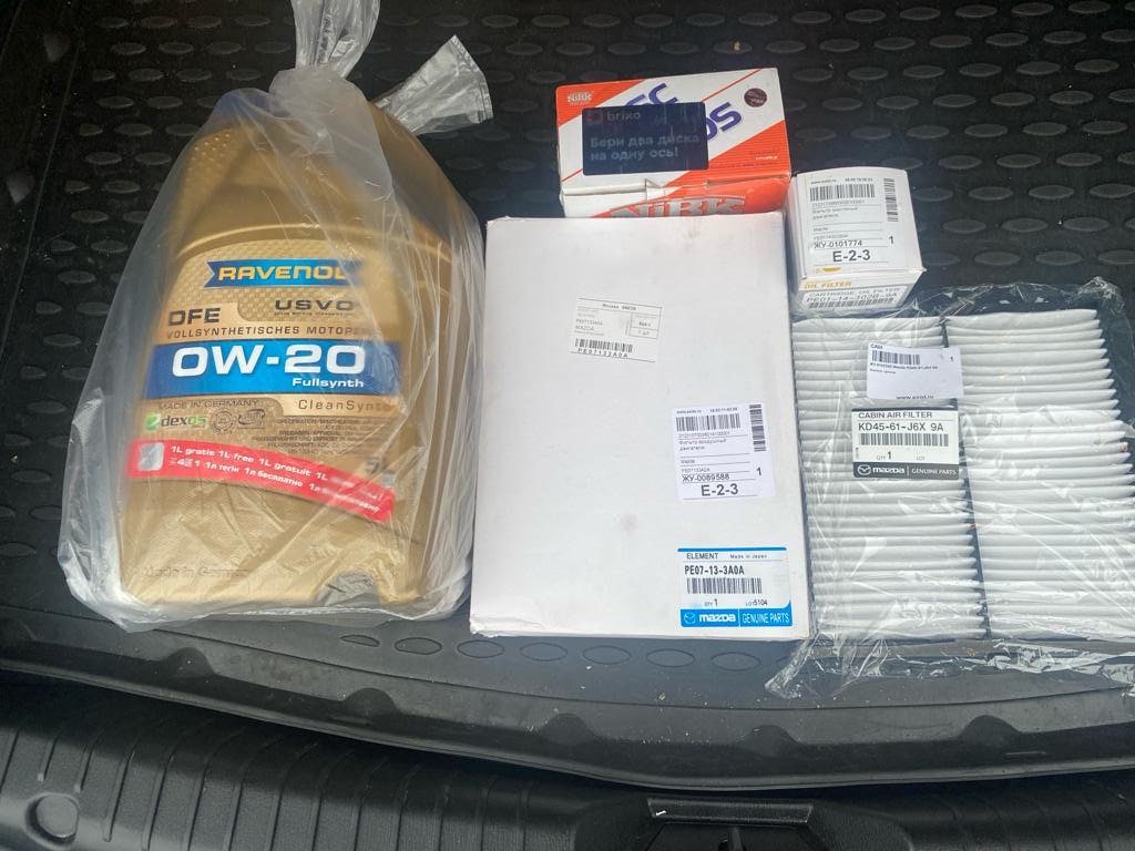 1. Начну с выбора расходников. Да-да, самый кусачий вопрос всегда и везде. Масло: остался точно на 0-20, смысла от 5-30 не вижу, на ресурс не влияет (ИМХО). Смотрел в сторону LiquiMoly и Idumitsu, последнее жаль только GF-5 (ничего сверх нового и интересного), но наткнулся на Ravenol, это еще и ПАО, да по хорошей цене. Зказал на IXORA за 6500р, надо брать! По итогу код на упаковке реально бьется с официальным сайтом, что естественно радует. Колодки (ТО-2 на 23000км дилер уже приговорил к замене перед): тут еще хуже было с выбором…Brembo (8тыс), NIBK (5-6к), оригинал (15-20к), ATE (8-10к) и тд. Брать откровенно дешман не хотелось, решил попробовать смешные от NIBK, нашел на яндекс также выгодно (до 5000р). Артикул — PN25002 Фильтры: тут взял все с Exist, типо оригинал! Салонный — Mazda KD45-61-J6X 9A Масляный — Mazda PE01-14-302B9A Воздушный — Mazda PE07-13-3A0A В любом случае лучше, чем дилерские подмены артикулов на китайские аналоги. Как итог, расходники встали в 14 000р.