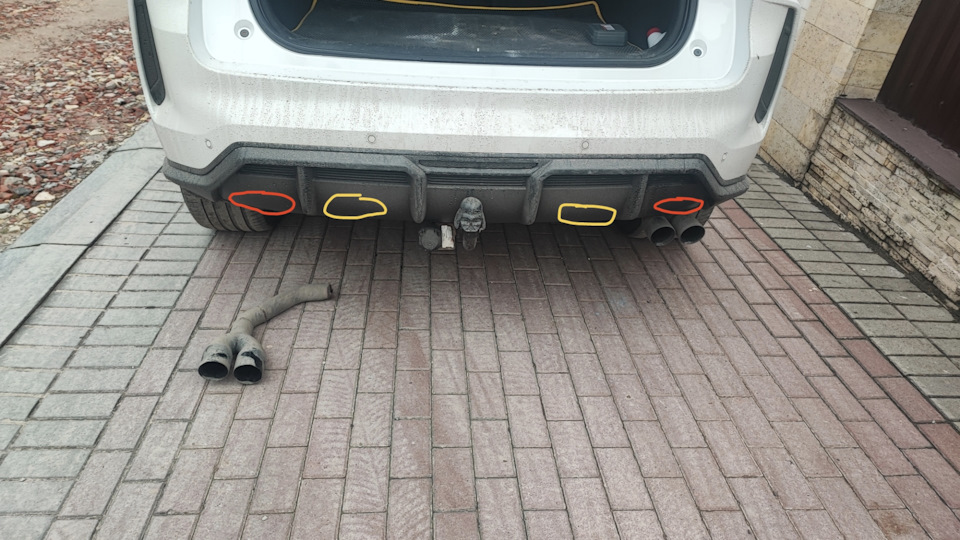 Не не, в самый центр там понятное фаркоп, да и если бы не было его, то это уже больше в цыганщину — выхлоп посередине на хавал 😁 я про крайние (красным) и которые ближе (желтым). Самое оно, когда нижние точки труб либо в ровень с нижними точками дифа или ниже максимум процентов на 30 диаметра трубы