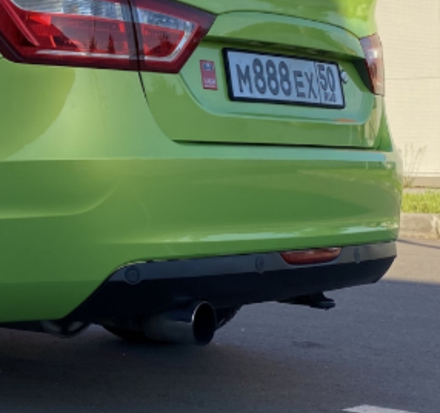 Фу! Но только не так! Резать надо бампер! Резать! Ну выглядит же как инородное тело, как к бабе писюн подставить! Просто посмотрите на любой авто, у которого труба не поросячий хвост (вниз под бампер), в выходит прямо, всегда под бампер есть «вырез», поэтому и выглядит плохо. Поэтому раздваиваивать или разтратвать, не важно, главное правильно это делать! Так делал на Гетце и на Весте, выглядит совсем иначе, нежели просто подставлять под бампер!