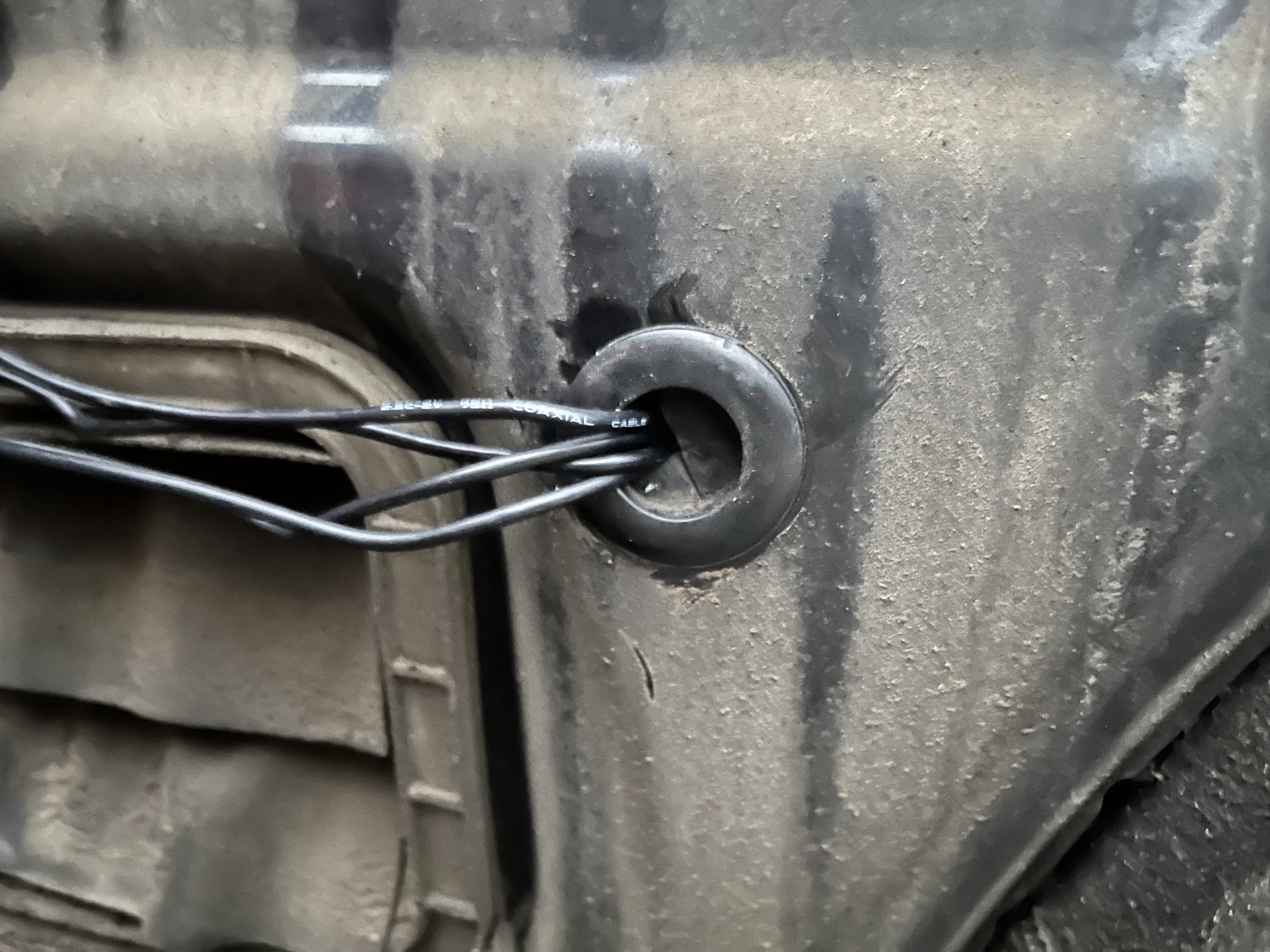 2. Заглушка резиновая. Сделал разрез крест на крест и пропихал все провода в багажник.