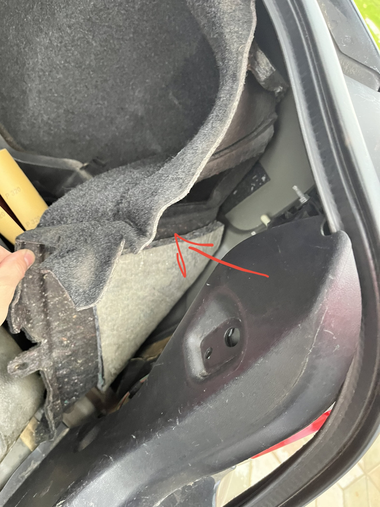 3. В багажнике разместил блок под фетровой защитой на правом крыле.