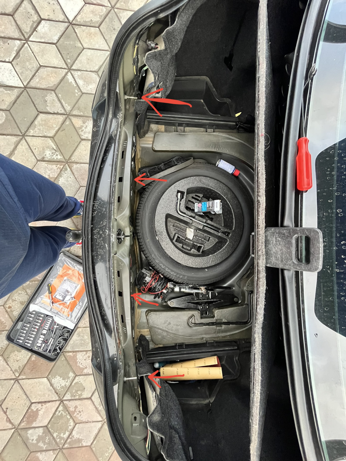 1. В багажнике открутить крючки на верхней части пластиковой обшивки, открутить петли для перевозки груза в нижней части пластиковой обшивки (на петлях отогнуть вниз пластиковую крышечку и увидишь шуруп)