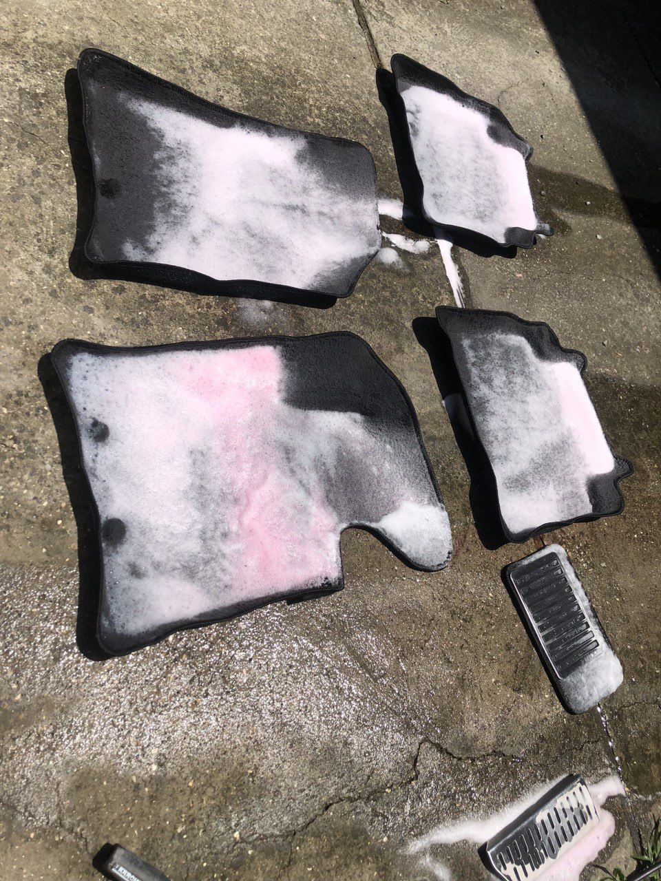 Ворсовые коврики отмыты с пеной кархером и заменены на резиновые.