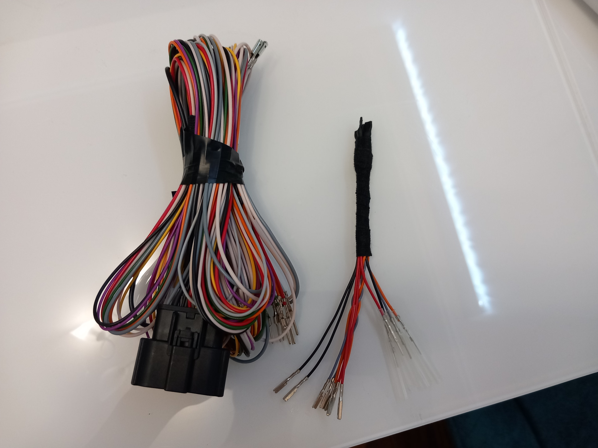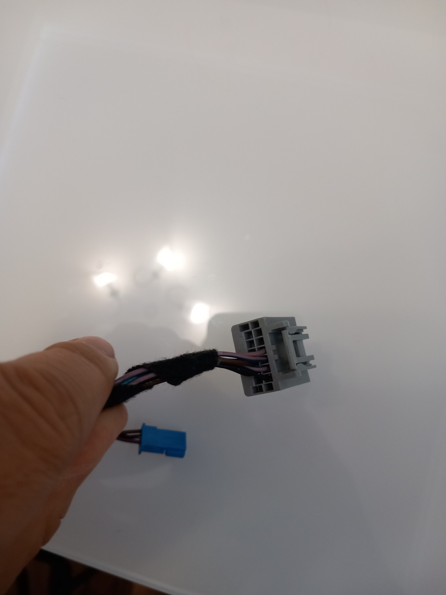 Так как у меня стоит полное лобовое стекло, то соответственно нужна полная проводка потолка – на авито за 6 т.р. нашел полную проводку по active city stop и многоцветную подсветку от рестайлинга в комплекте вместе с очечником от реста с многоцветной одсветкой — до полной проводки не хватало только проводки для камеры ipma, а она у меня есть в планах дооснащения, поэтому проводку пришлось допиновывать . Для решения этой задачи в очередной раз обратился к Денису BezzzPaniki он сделал небольшой жгутик для перепиновки разъема.
