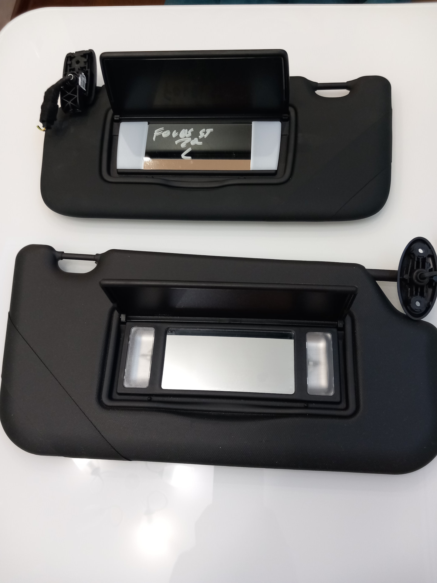 на ebay нашёл несколько черных солнцезащитных козырьков, но они были без подсветки, а я хотел с подсветкой. И вот в один день нахожу на Аллегро (Польский аналог Авито) комплект черных козырьков от фокус ST, заказываю через аллегроэкспресс… и через дня 3-4 после оплаты, когда козырьки уже были оплачены и направились из Польши в Калининград, захожу в личный кабинет и вижу надпись focus ST 20 и тут до меня доходит, что в 20 году уже был 4 фокус, а не 3 и козырьки соответственно от фокуса 4. Решил всё же подождать и получить козырьки (может быть и подходят) – через 3 недели получаю козырьки еду в гараж примеряю – не подходят по крепежу (примерно на 1-2 см).