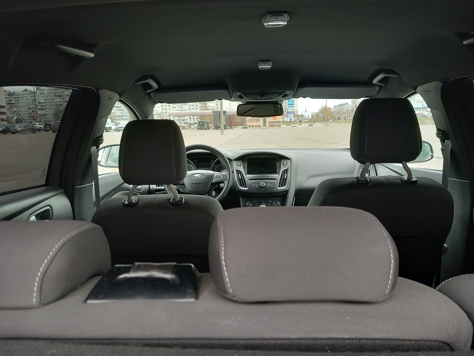 В итоге решил искать обычный светлый потолок в хорошем состоянии от титаниума. Долго искал потолок у себя в городе, т.к. привезти транспортной потолок — задача сложная ( но всё же можно). И вот в один прекрасный день читаю драйв, захожу в БЖ к DenFordCheb, где он пишет об установке обвеса st-line на свой фокус. Читая комментарии к БЖ, выясняю, что обвес с разбора фокуса 3 st-line рестайлинг из Японии и у него на продажу есть оригинальный черный потолок с оригинальным черным пластиком на все стойки и крышку багажника. Зная что в Европе на ST-line идет черный потолок такой же как на тренд – без очечника, немного сомневался нужен он мне или нет и решил что пластик точно забираю, тем более, что цена очень приемлемая за все оригинальные черные стойки и черные обшивки багажника 5 000,00 рублей. Но когда DenFordCheb скинул фото потолка, я увидел, что он в идеале без каких либо заломов, царапин и т.д. да к тому же он оказался, так сказать, максимальным. т.е. с вырезом под очечник (если кто не знает в потолок от тренда очечник не вставить) Естественно я сразу оплатил 20 000,00 за потолок и 5 000,00 за пластик. Потолок благополучно доехал до меня СДЭКом в обрешетке – ценник за доставку до сих пор страшно озвучивать – 16 т.р., но это я сам додумался такой негабарит отправить в обрешетке экспресс доставкой))