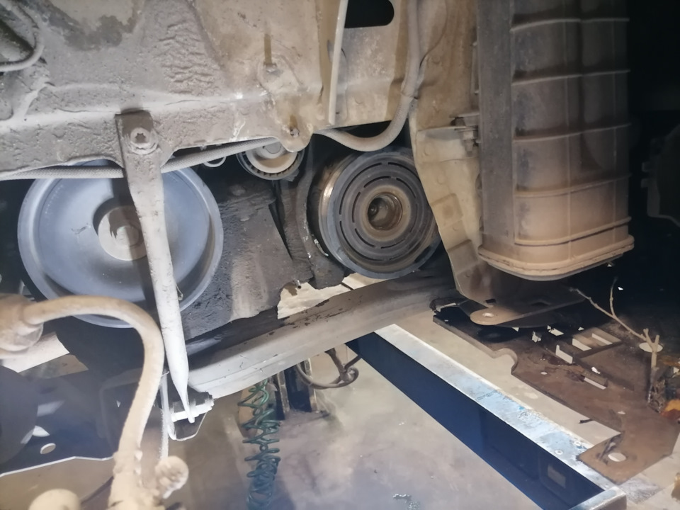Начну с того что небольшой посторонний гул появился уже давно, но при осмотре что то критичного на тот момент не обнаружил, все что было связано с Грм работало тихо, по навесному были только догадки. А сегодня шум уж больно стал страшным, так как я был как раз в сервисе с другой проблемой решили посмотреть что именно издаёт звук и выяснилось что умер подшипник компрессора, благо у них он был в наличии сразу поменяли не снимая компрессора с авто, для этого пришлось откручивать 2 опоры двигателя. После замены настала тишина и мой внутренний покой)))