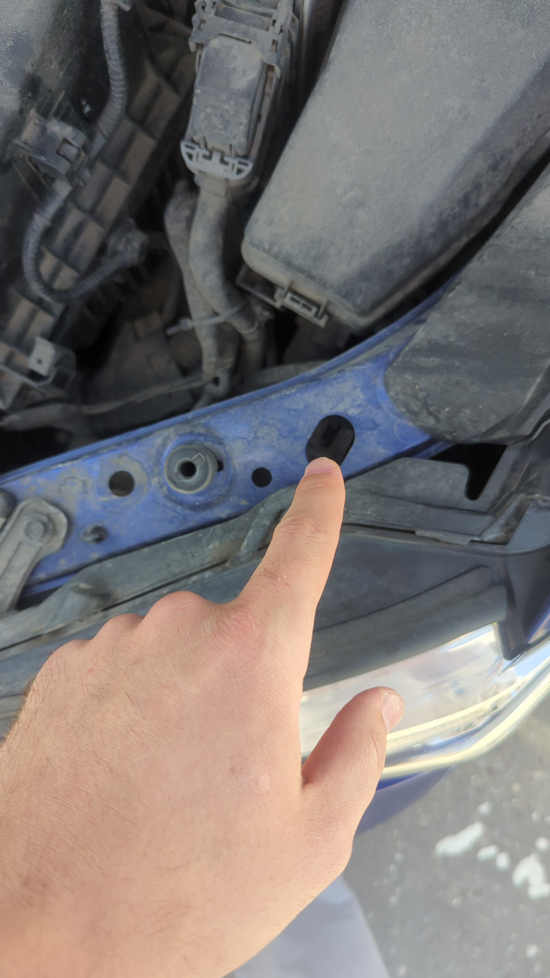 Нужна длинная крестовая отвёртка, в это отверстие, до звёздочки на фаре и крутить по часовой, только не переборщите