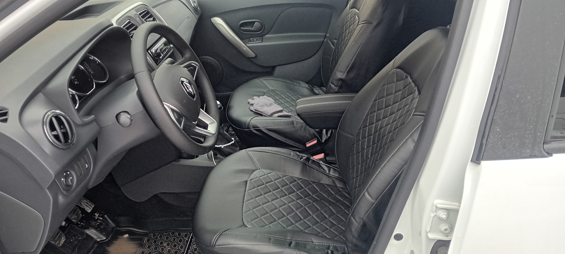 На днях заехал в магазин автозапчастей и прикупил чехлы, причем универсальные. Купил, и вчера возился с установкой. Передние сидения пришлось снять, чтобы можно было добротно их надеть. Переходники подогрева сидений снялись с большим трудом, да и пластик был просто отмудохан клипсами.
